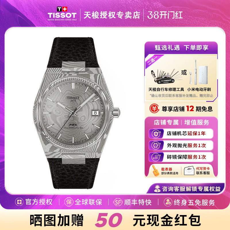 📚 Tissot天梭PRX超级玩家系列80机械机芯大马士革精钢腕表瑞士手表