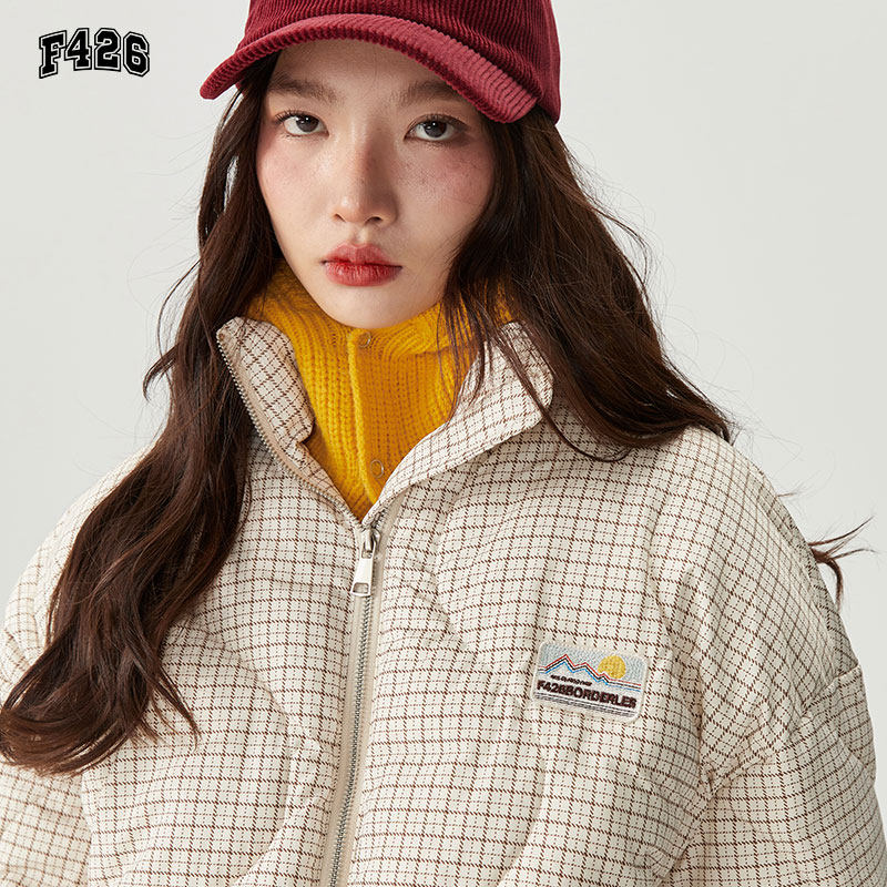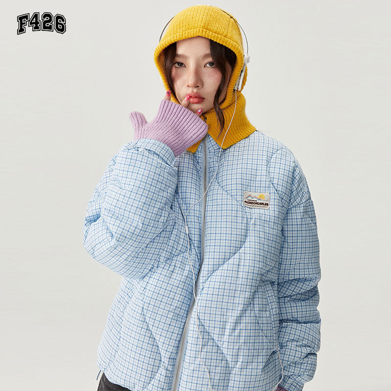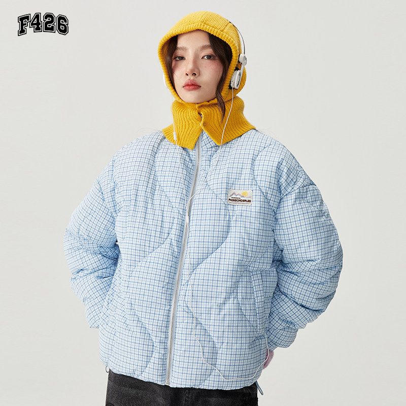 📚 【F426奥莱店】国潮牌冬季情侣街头宽松波浪绗线格子棉服外套