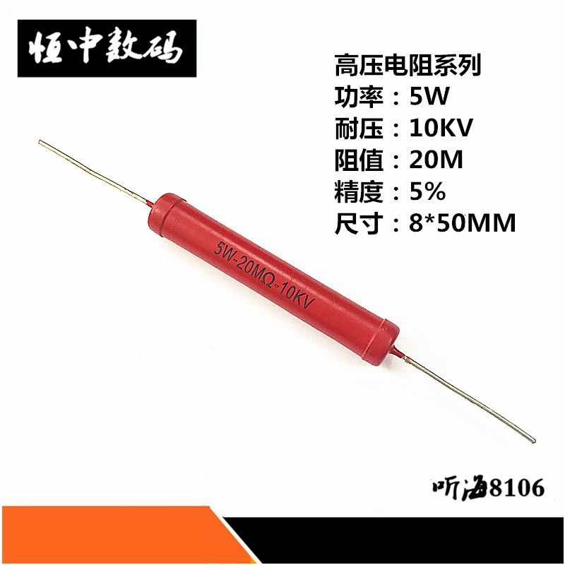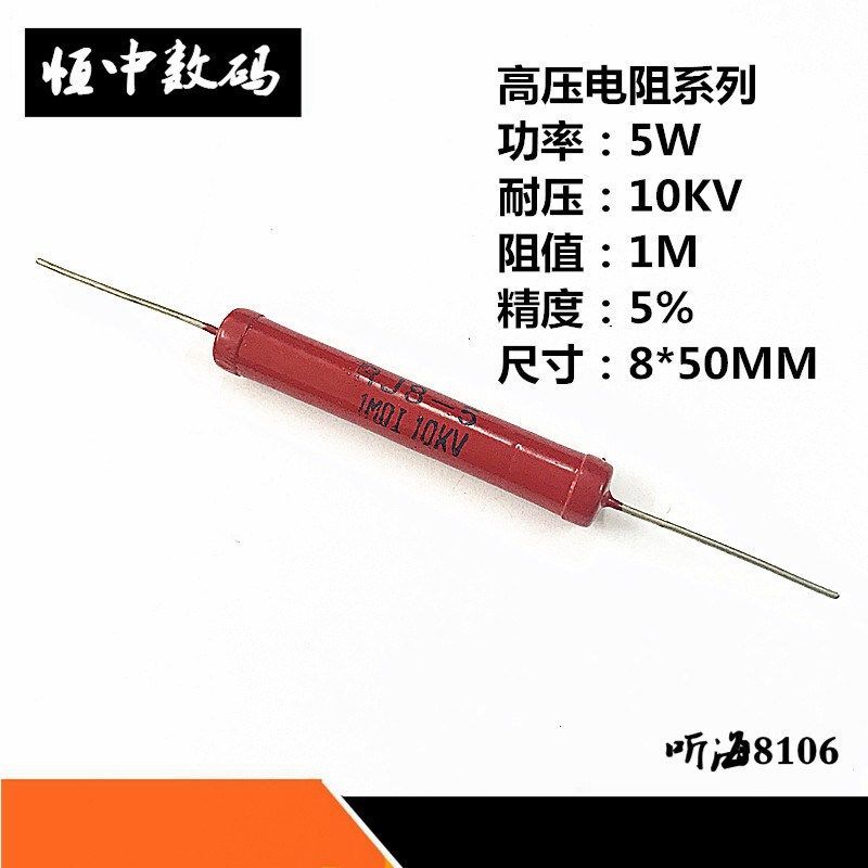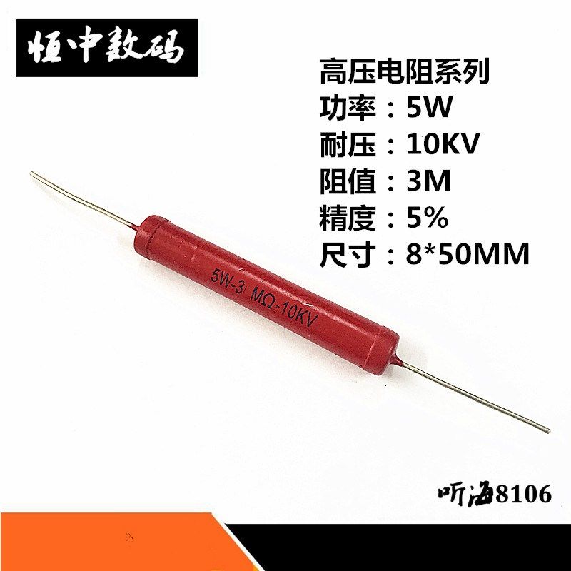 📚 5W高压电阻RI80-10KV大红袍玻璃釉1M2M3M4M5M8M10M15M20M30M50兆