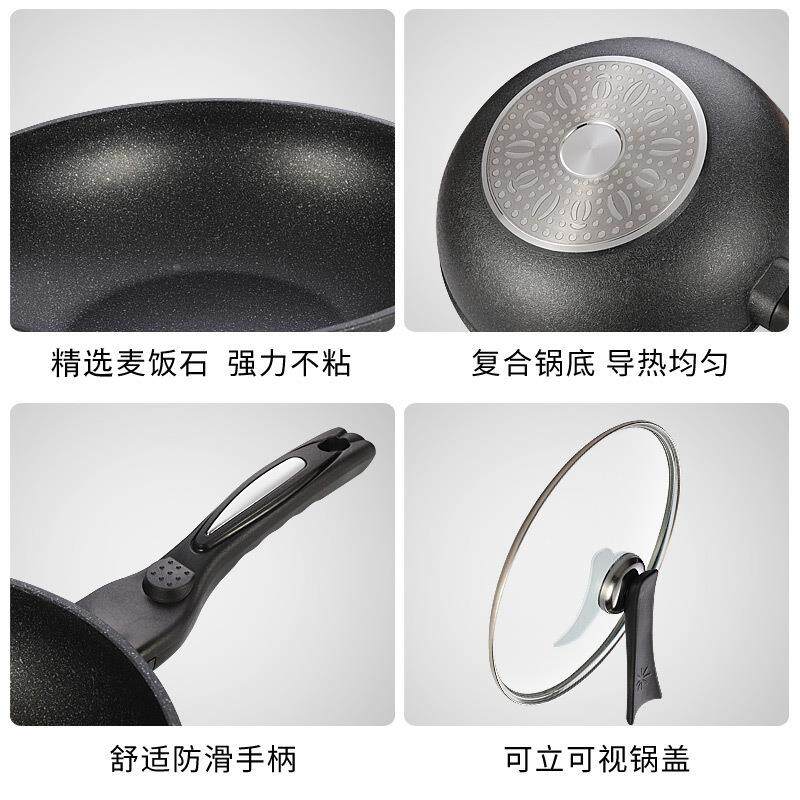 📚 麦饭不锅炒锅家用炒菜石不沾锅电68磁炉专用麦石锅锅具无油烟锅粘