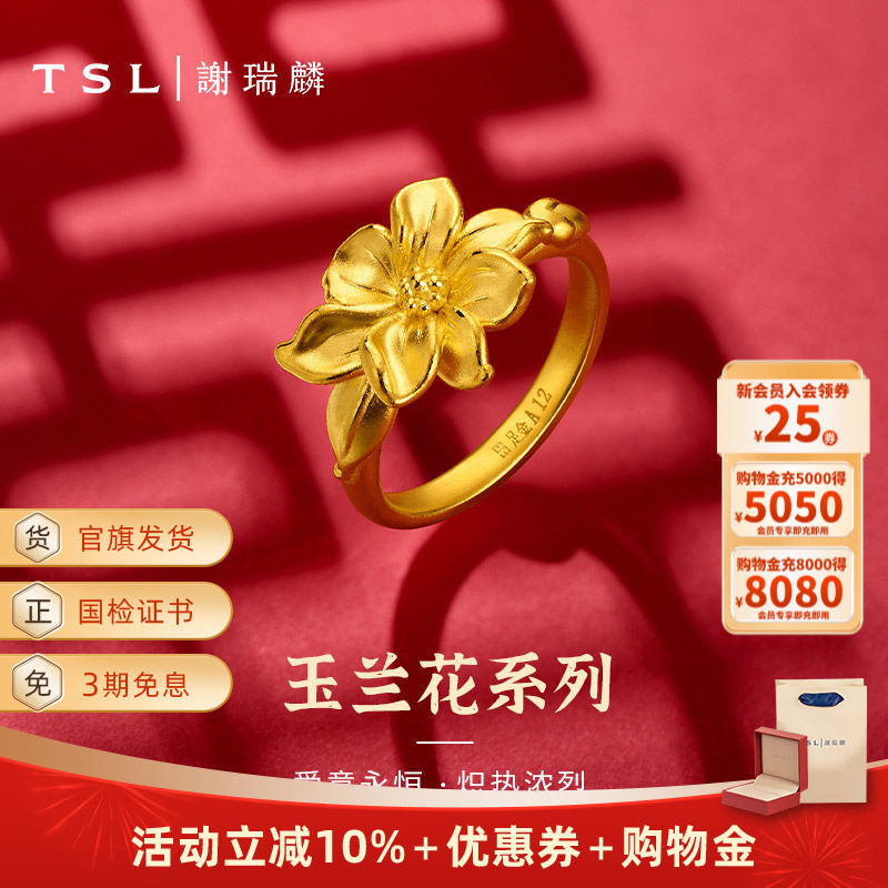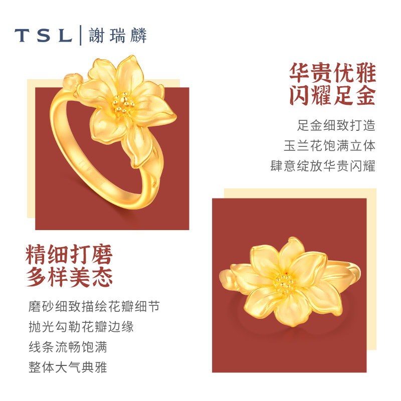 📚 TSL谢瑞麟玉兰花系列黄金戒指女款足金婚嫁XJ819