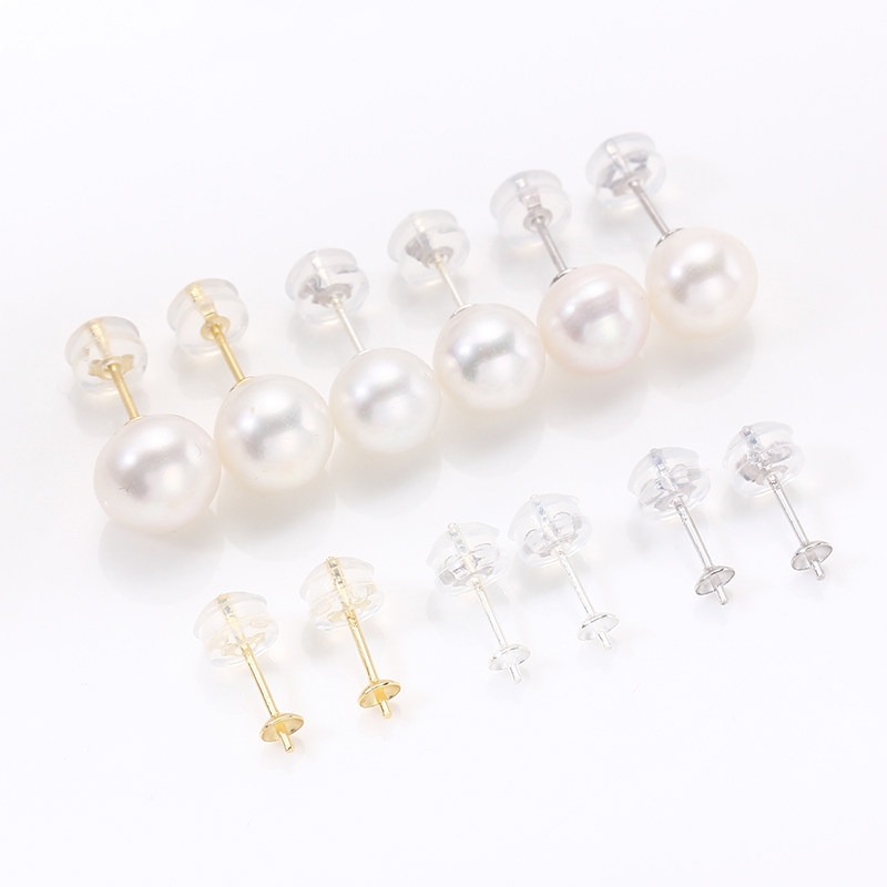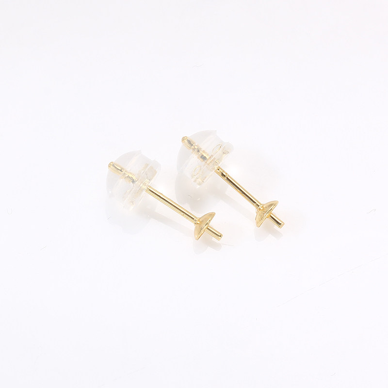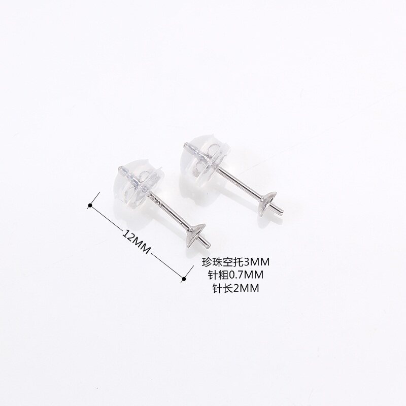 📚 S925纯银珍珠耳钉3mm 硅胶耳堵简单款珠盘针空托珍珠耳环DIY配件