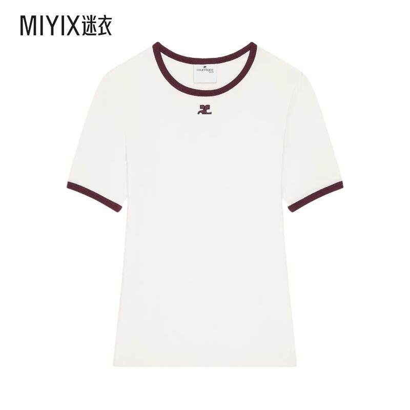 📚 【秋冬新品】Courrèges 女款CON BORDI A CONTRASTO 经典T恤 迷