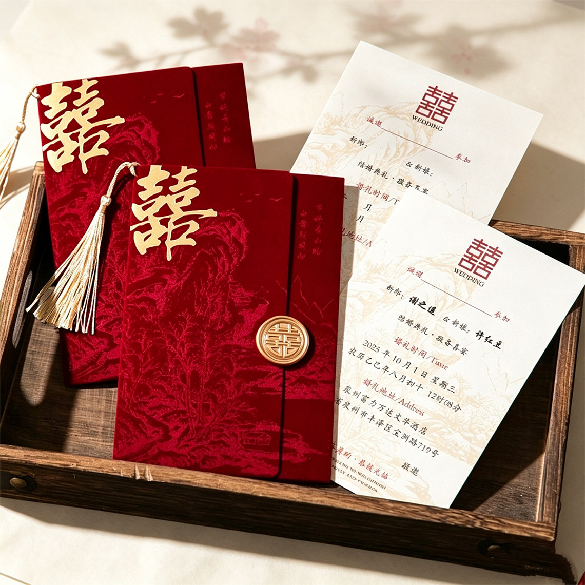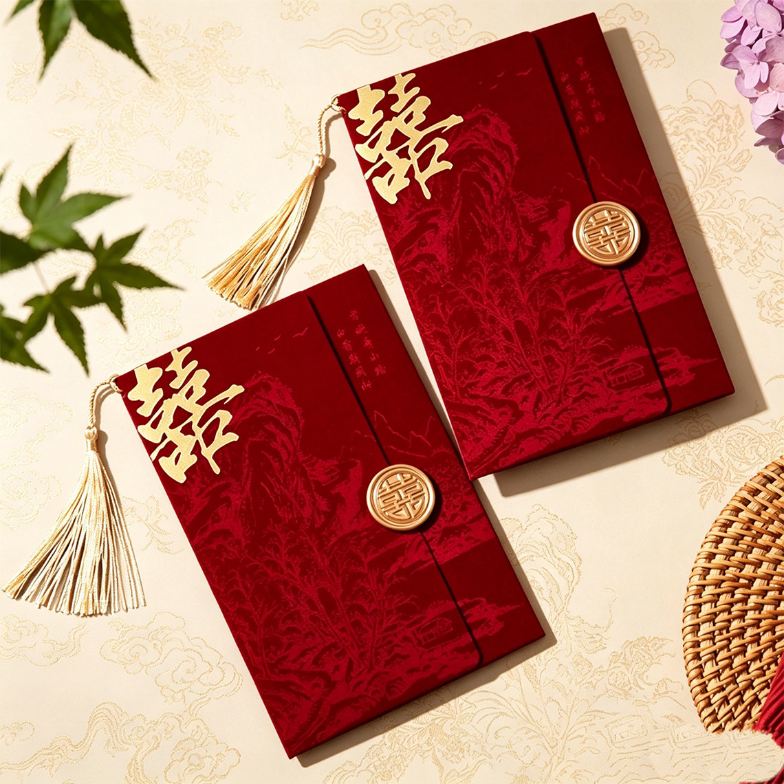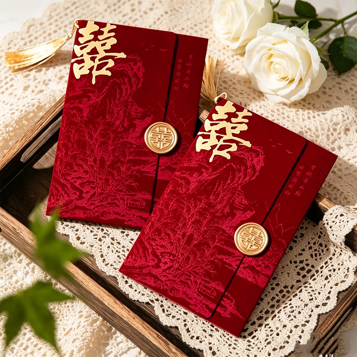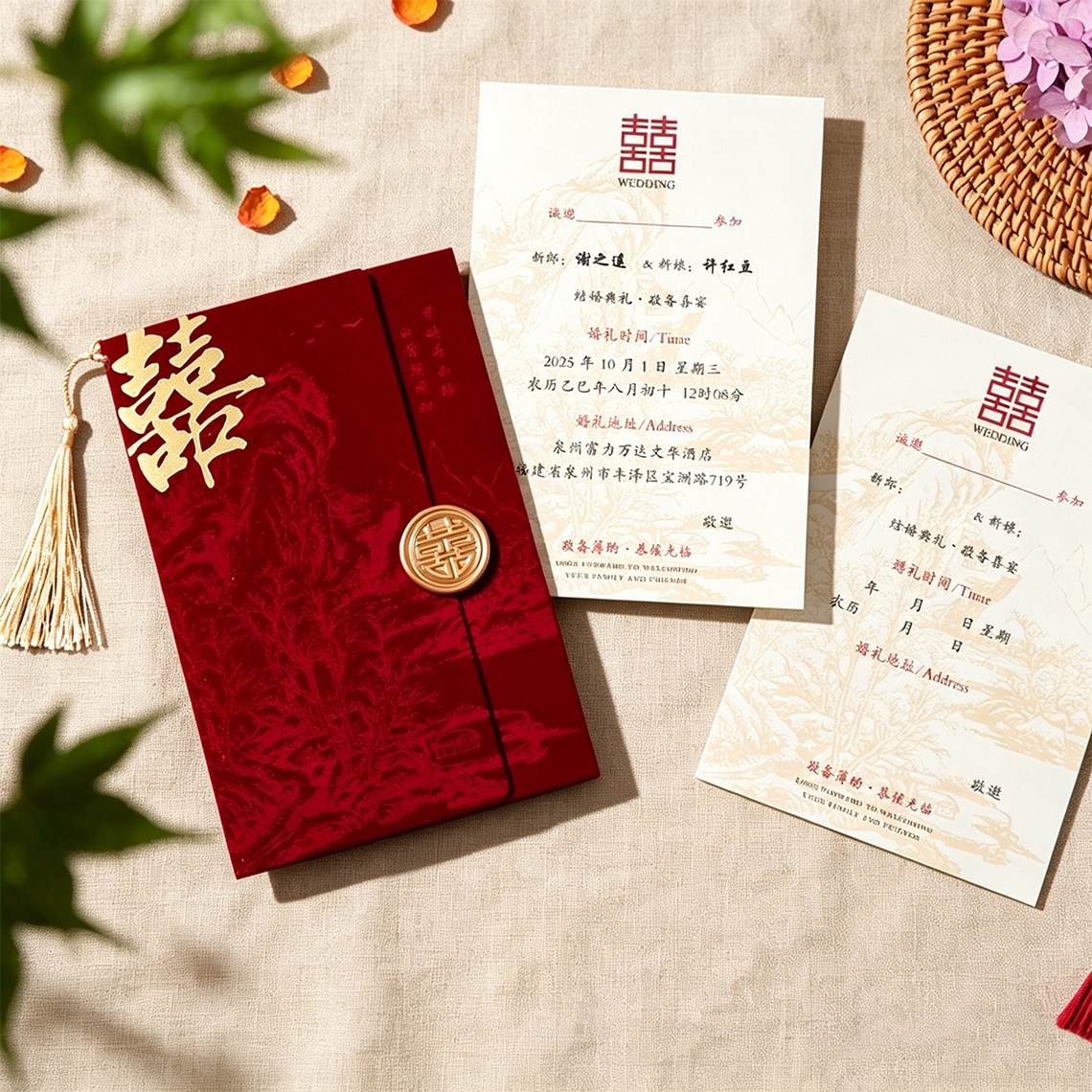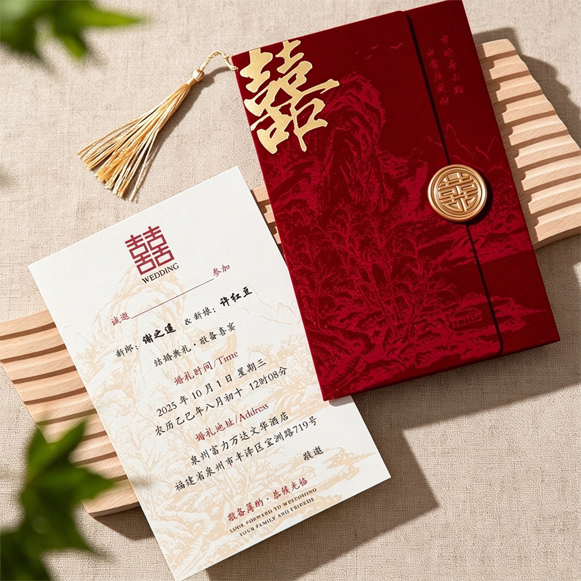 📚 结婚请柬2026新款中式喜帖丝绒高级感简约邀请函定制打印请帖婚礼