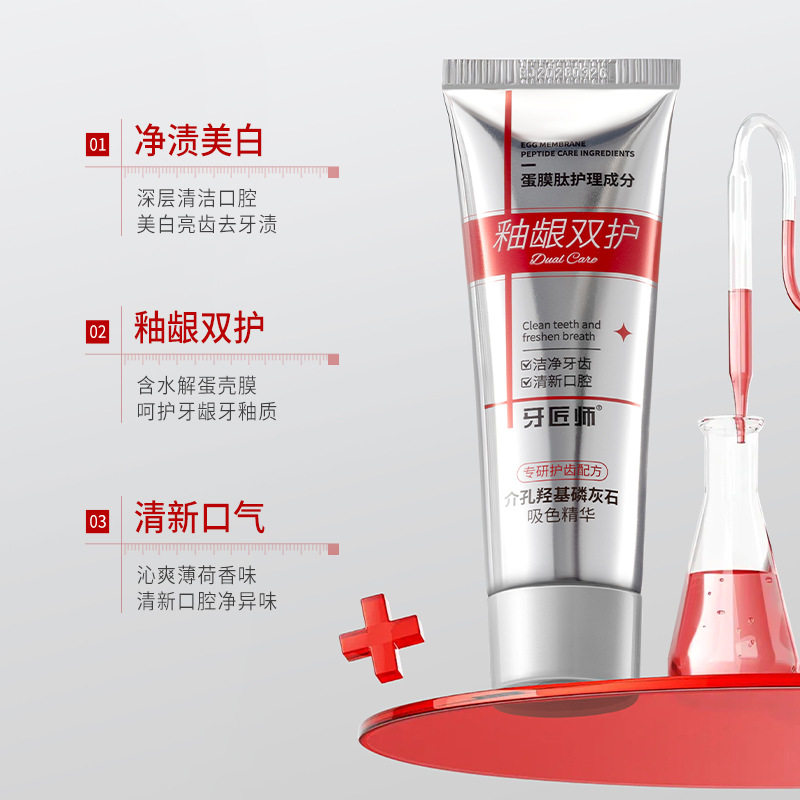 📚 牙匠师介孔羟基磷灰石吸色精华釉龈双护牙膏清新口气护龈牙膏成人