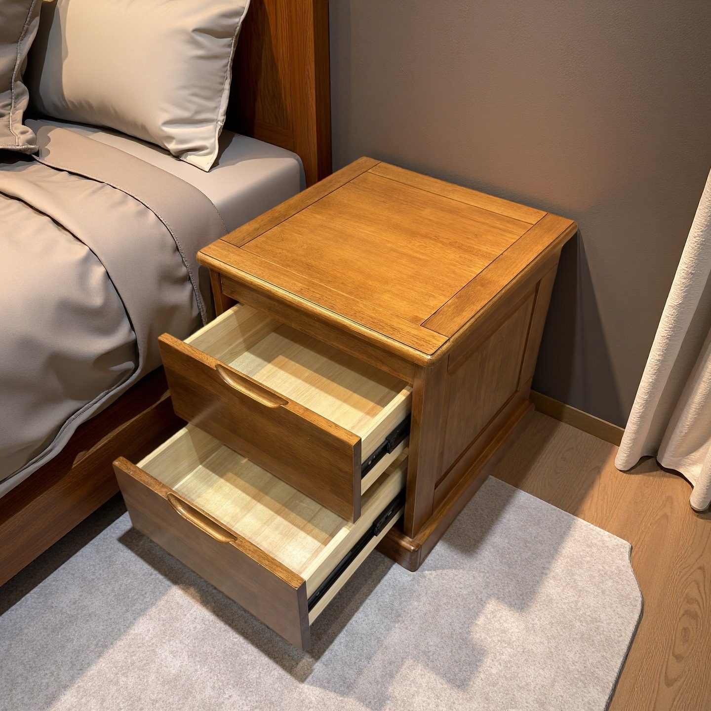 #实木 #暗格床头柜 #多功能保险 #中式现代 #卧室床边柜 #收纳储物 #券后价1199