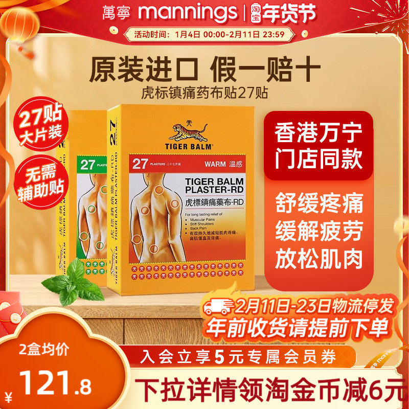 📚 虎标温感镇痛药布消炎药膏贴27大片老虎牌原装舒缓肌肉酸痛颈肩