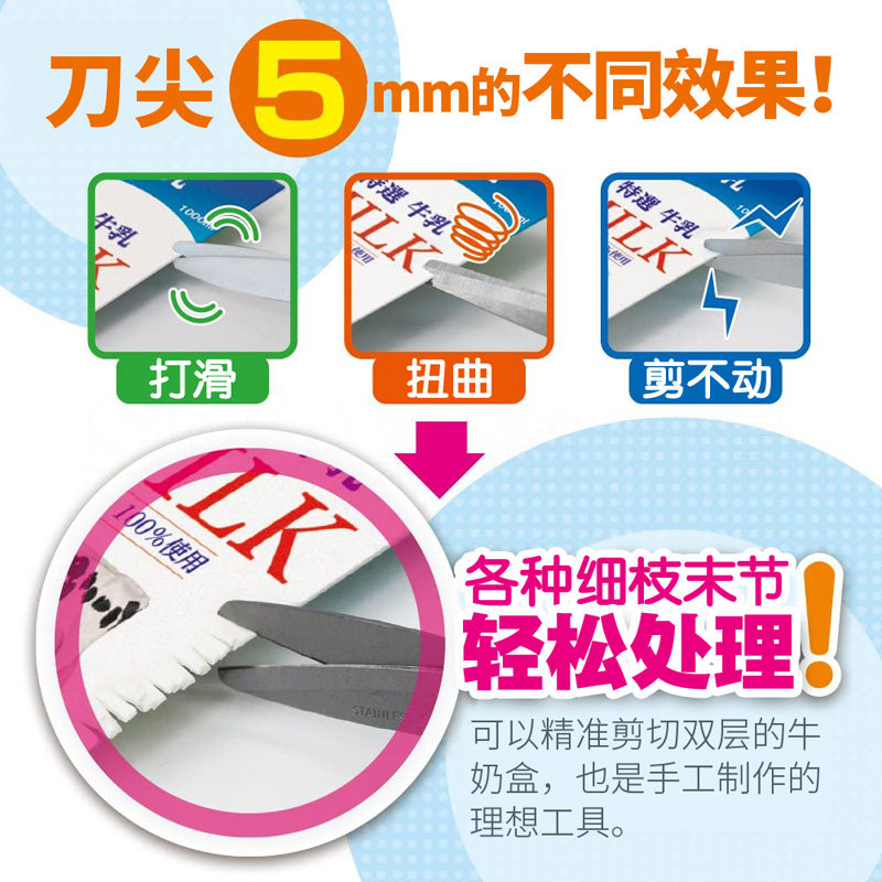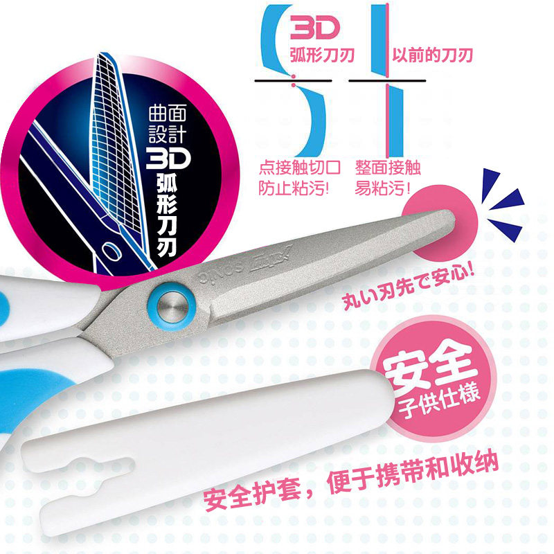 📚 日本SONIC儿童索尼克儿童剪刀安全手工幼儿园用含氟涂层3D刀刃防污防粘手工剪纸 圆头不伤手右手左手用