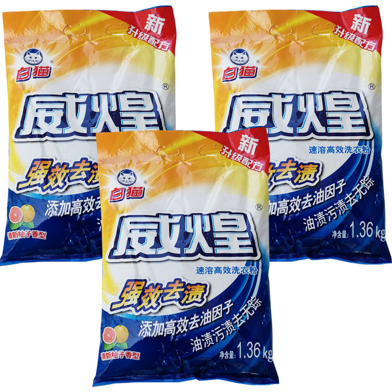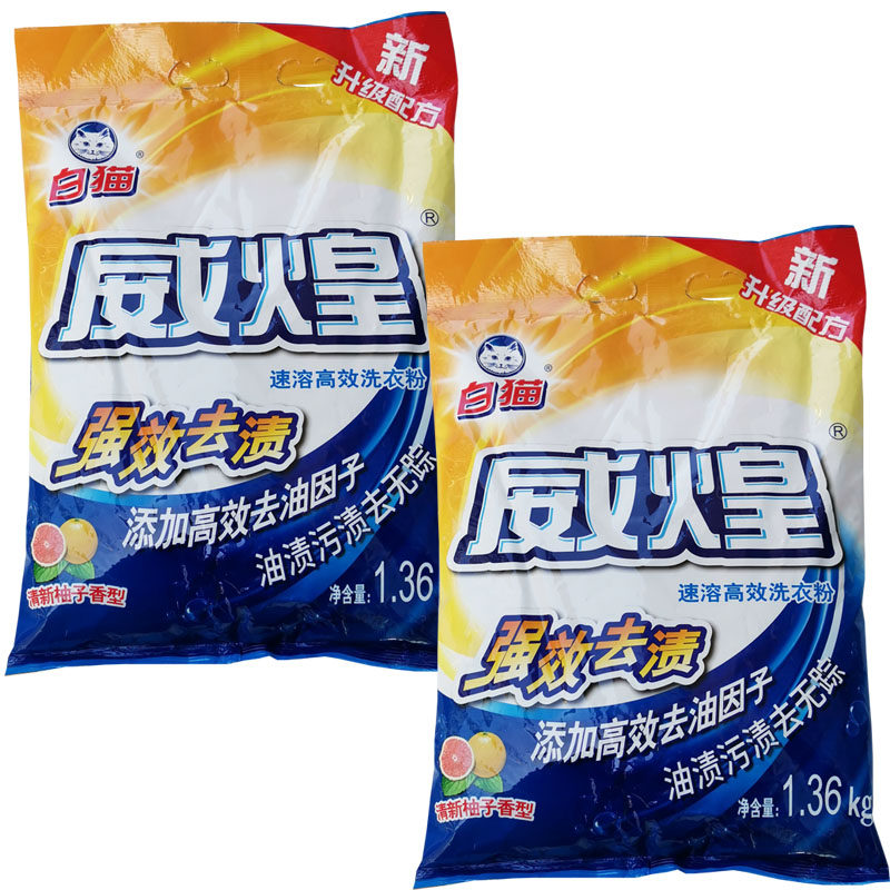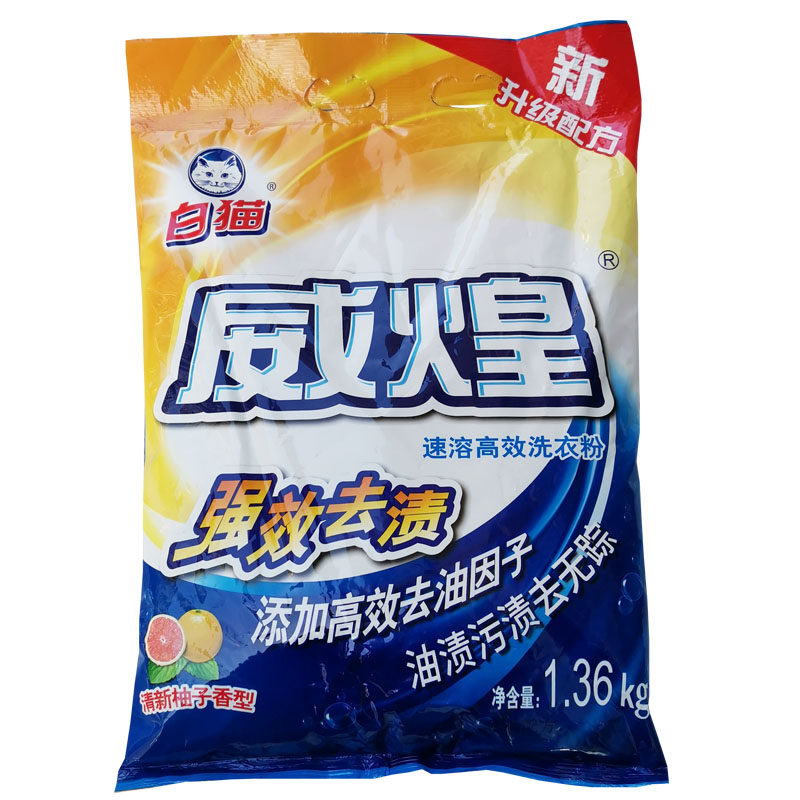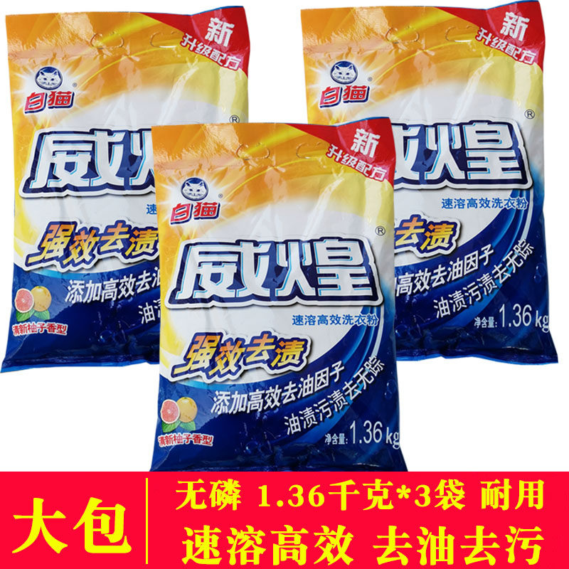 📚 白猫威煌洗衣粉1.36kg速溶高效无磷洗衣粉强效去渍家用大包实惠装