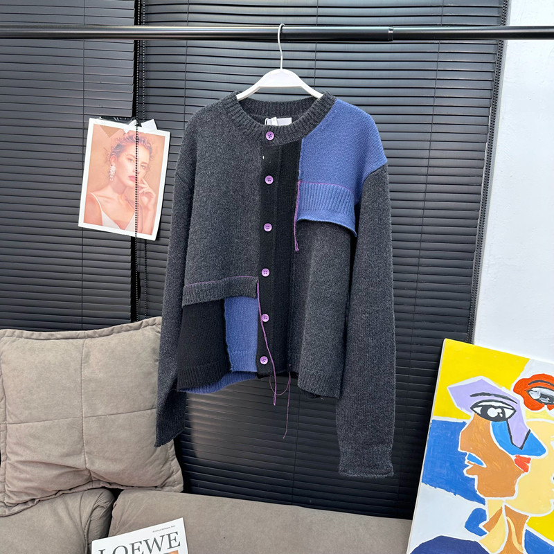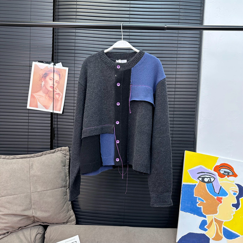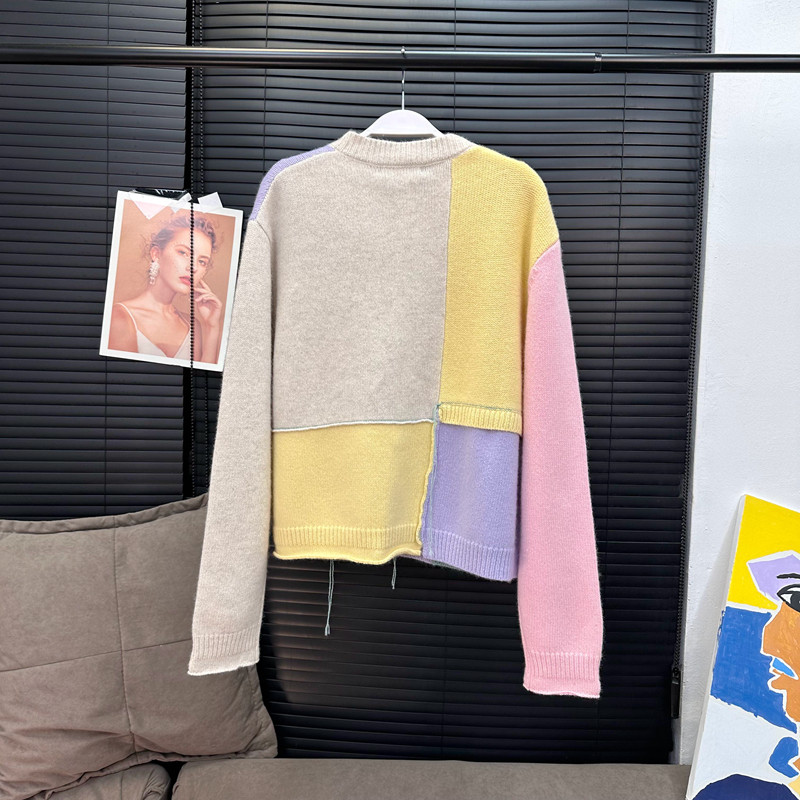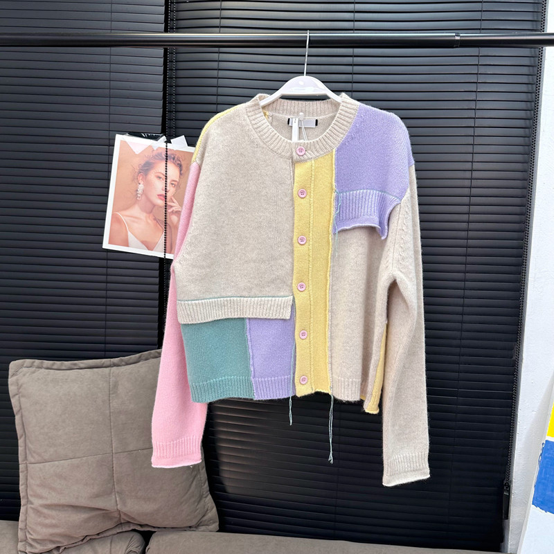 📚 章章11/10 色彩拼图全羊毛拼接针织毛衣开衫
