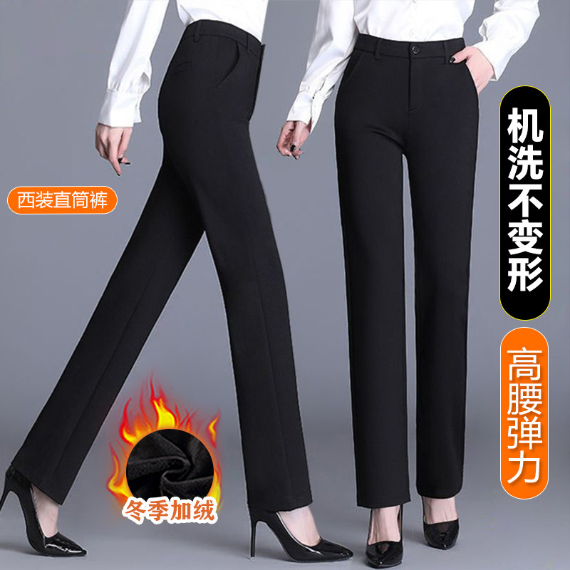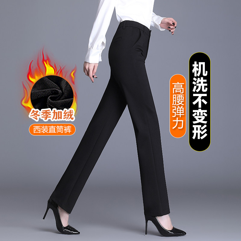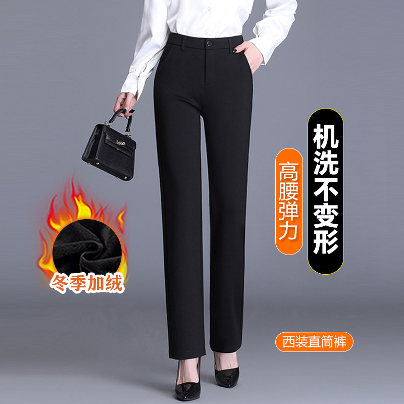 📚 加绒直筒裤女士秋冬季爆款高腰小个子休闲显瘦黑色九分窄版西装裤