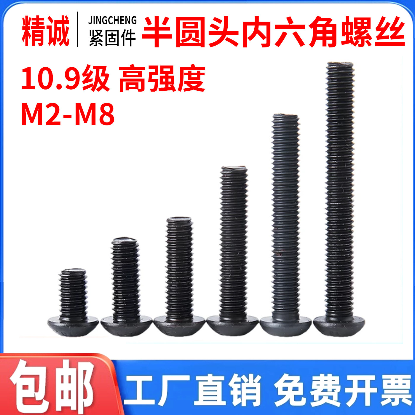 📚 黑10.9级半圆头内六角螺丝元平圆杯盘蘑菇螺栓 M2M2.5M3M4M5M6M8