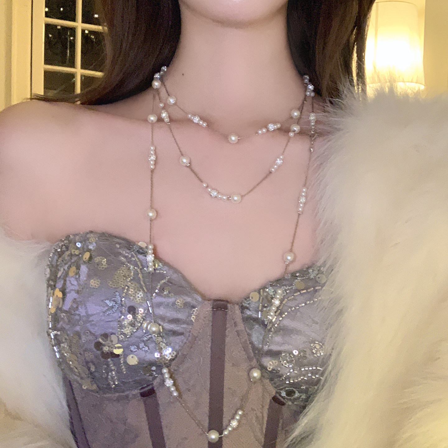 📚 【蜜桃茶】氛围感满天星多层珍珠项链女长款叠戴秋冬高级千金配饰