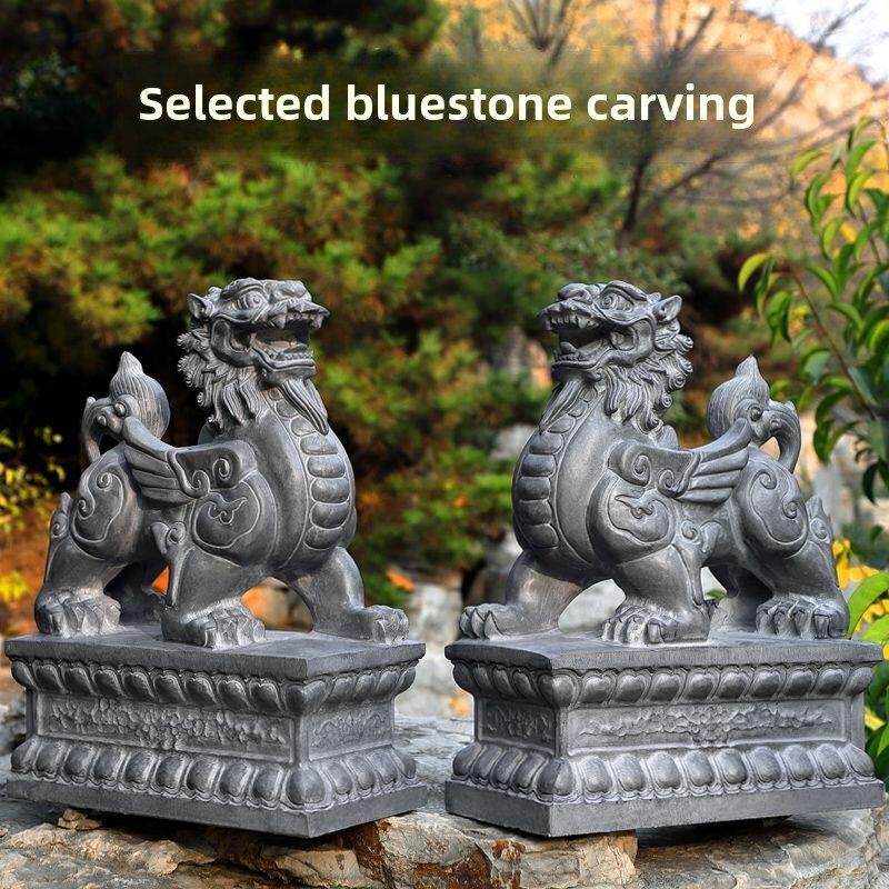 📚 石雕青石貔貅摆件一对门口酒店门墩招财皮丘镇宅独角大型石头神兽