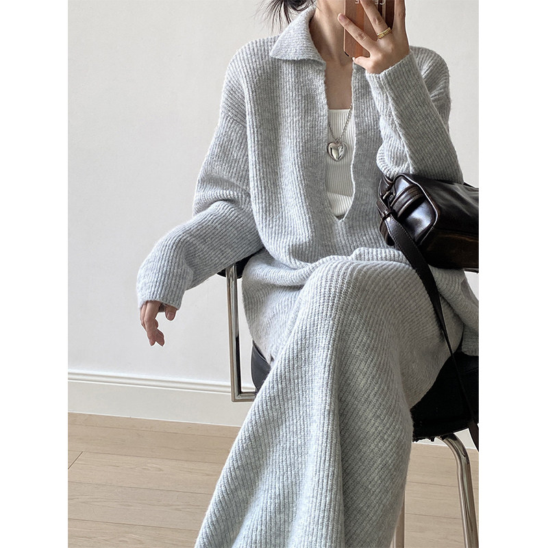 👗这套女款针织衫和半身裙的搭配,简直让人眼前一亮!精致的韩风设计,舒适又高级,真的是秋冬必备!🍂