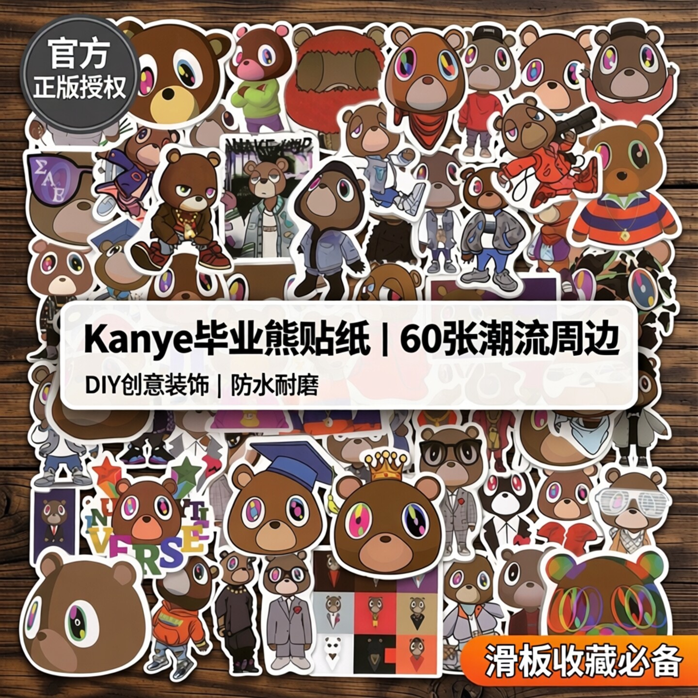 📚 60张Kanye毕业熊贴纸周边侃爷辍学熊笔记本行李箱DIY手机背卡手帐笔记本电脑滑板吉他头盔装饰防水diy贴画