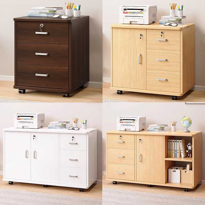 📚 文件柜办公室木质带锁资料收纳柜桌下侧边柜落地置物架矮柜带抽屉