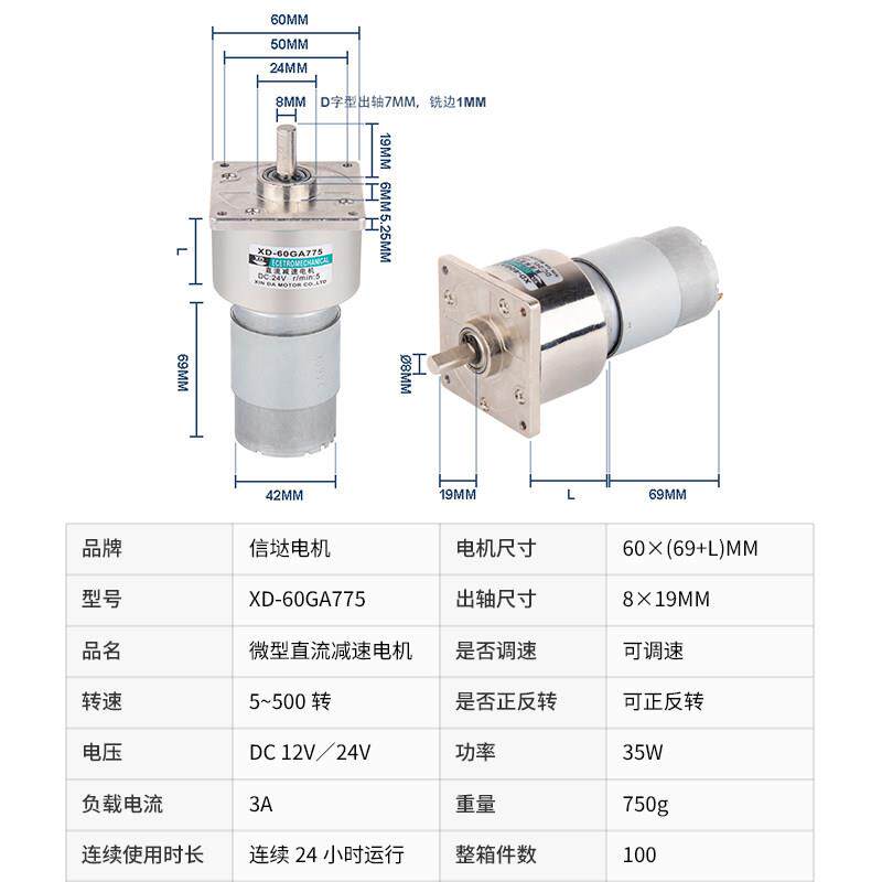 📚 信垯 60GA775直流减速电机调速低速慢速正反转大扭力齿轮微型马达