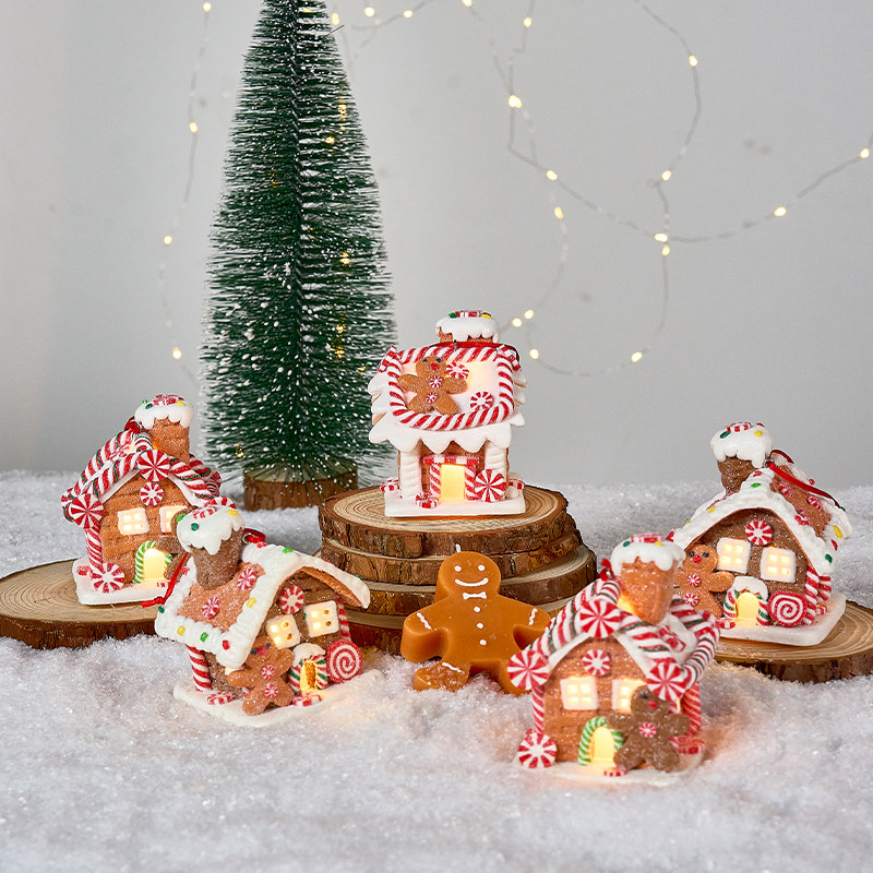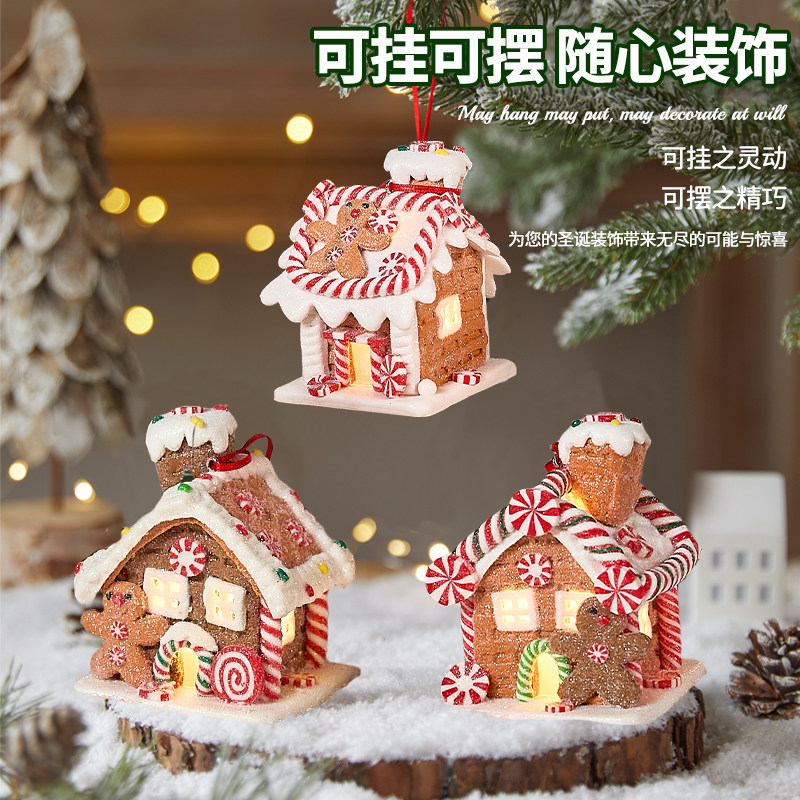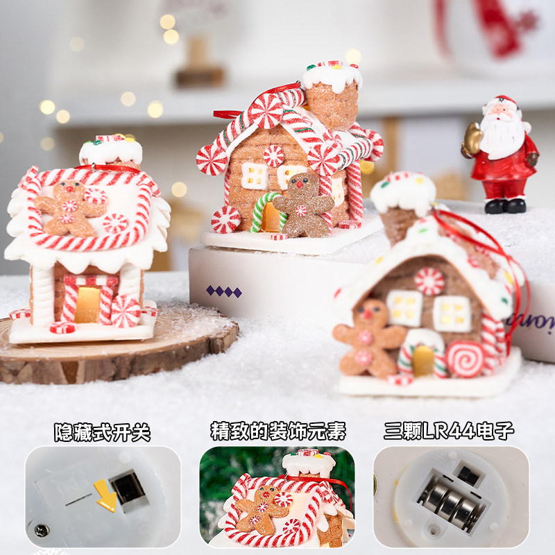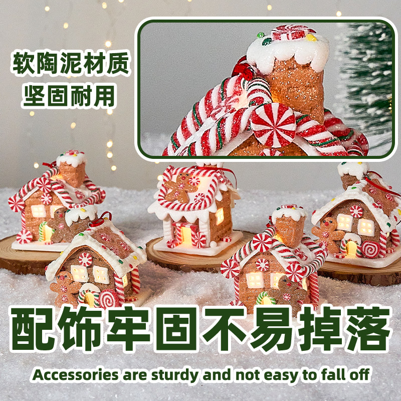 📚 圣诞节装饰软陶发光饼干小房子氛围创意桌面摆件雪屋布置道具礼品