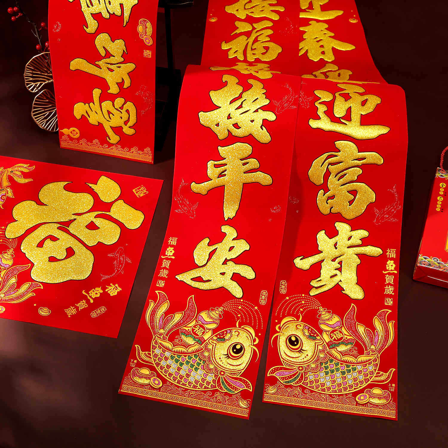📚 窄对联小号版10cm贴入户房间门上自粘胶春联26马年新12cm尺寸80cm