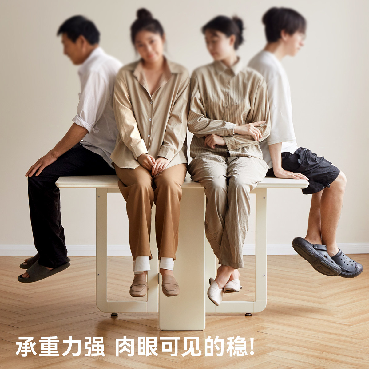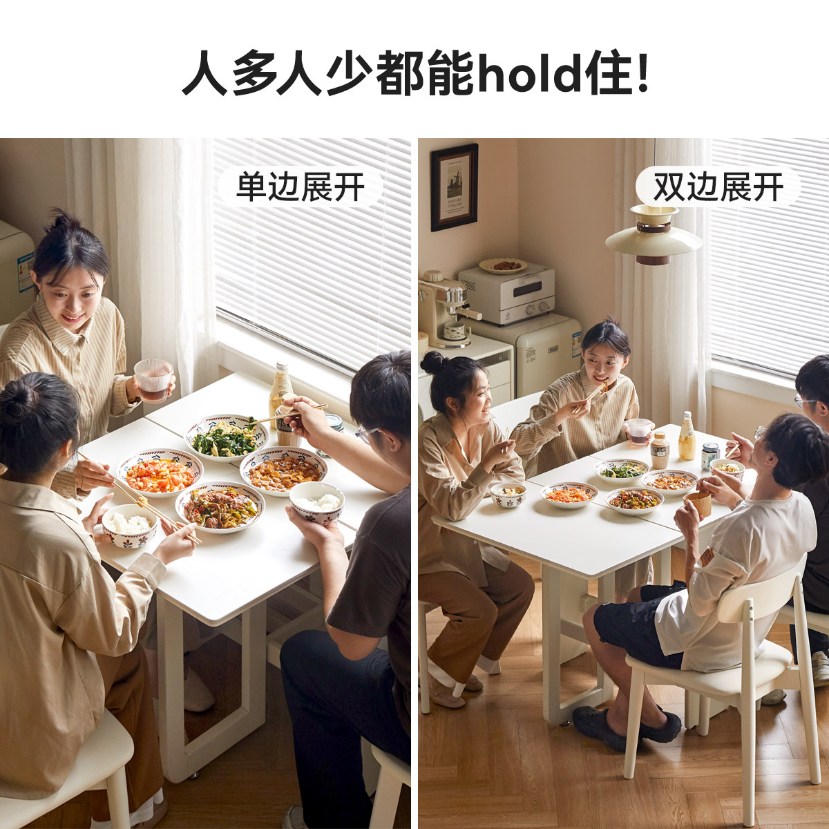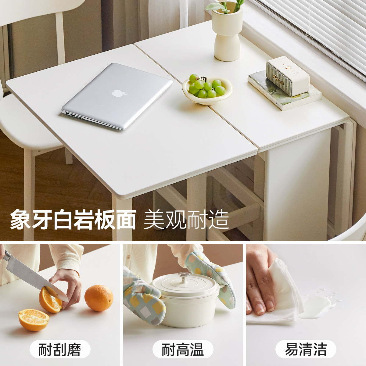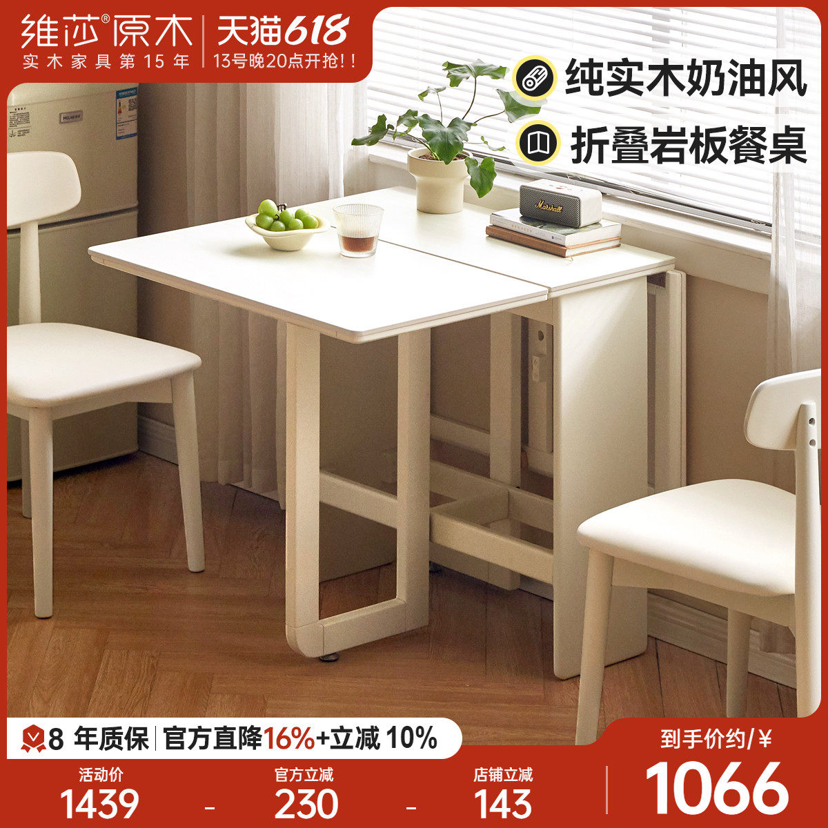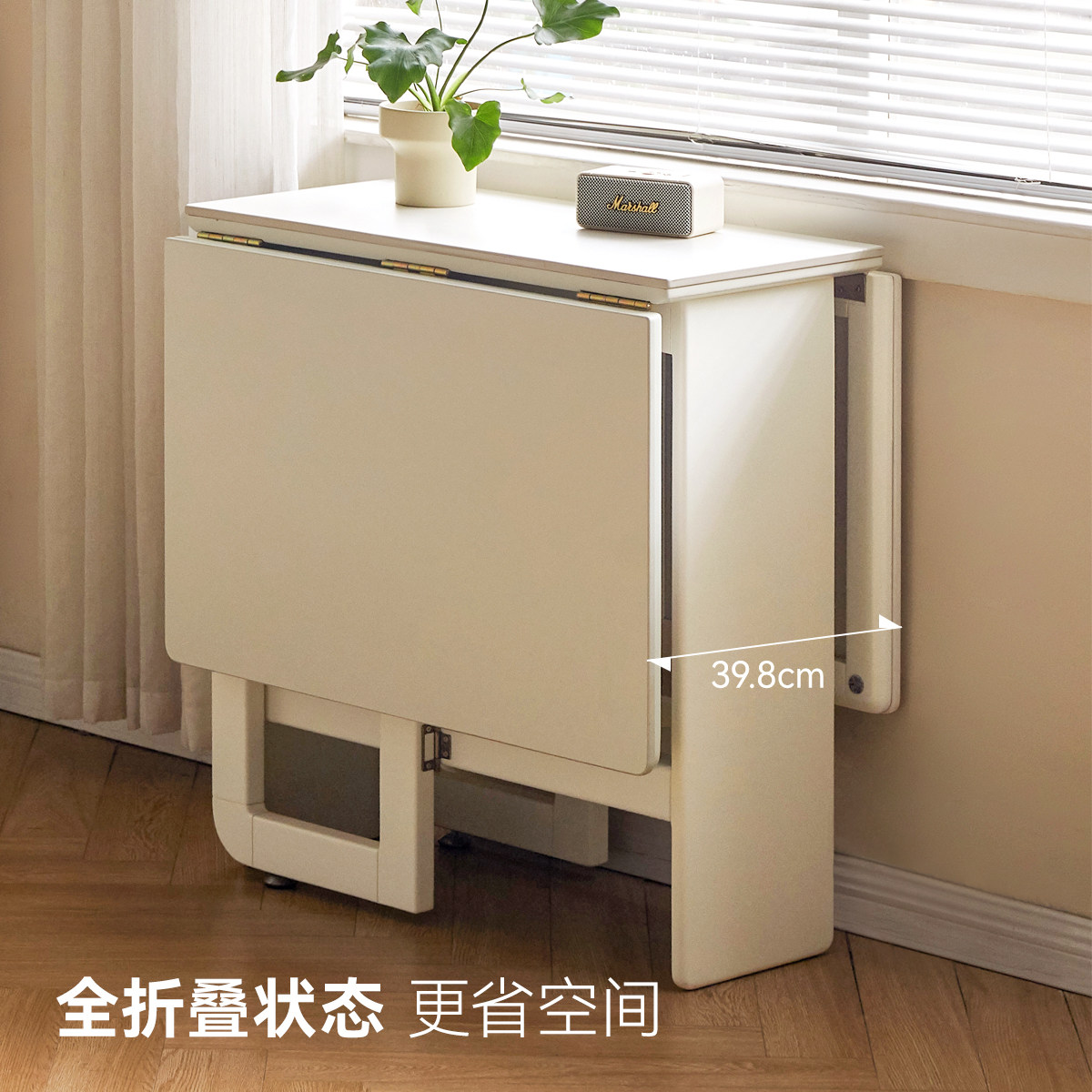 📚 源氏木语x维莎实木折叠餐桌奶油风吃饭桌子小户型白色岩板饭桌