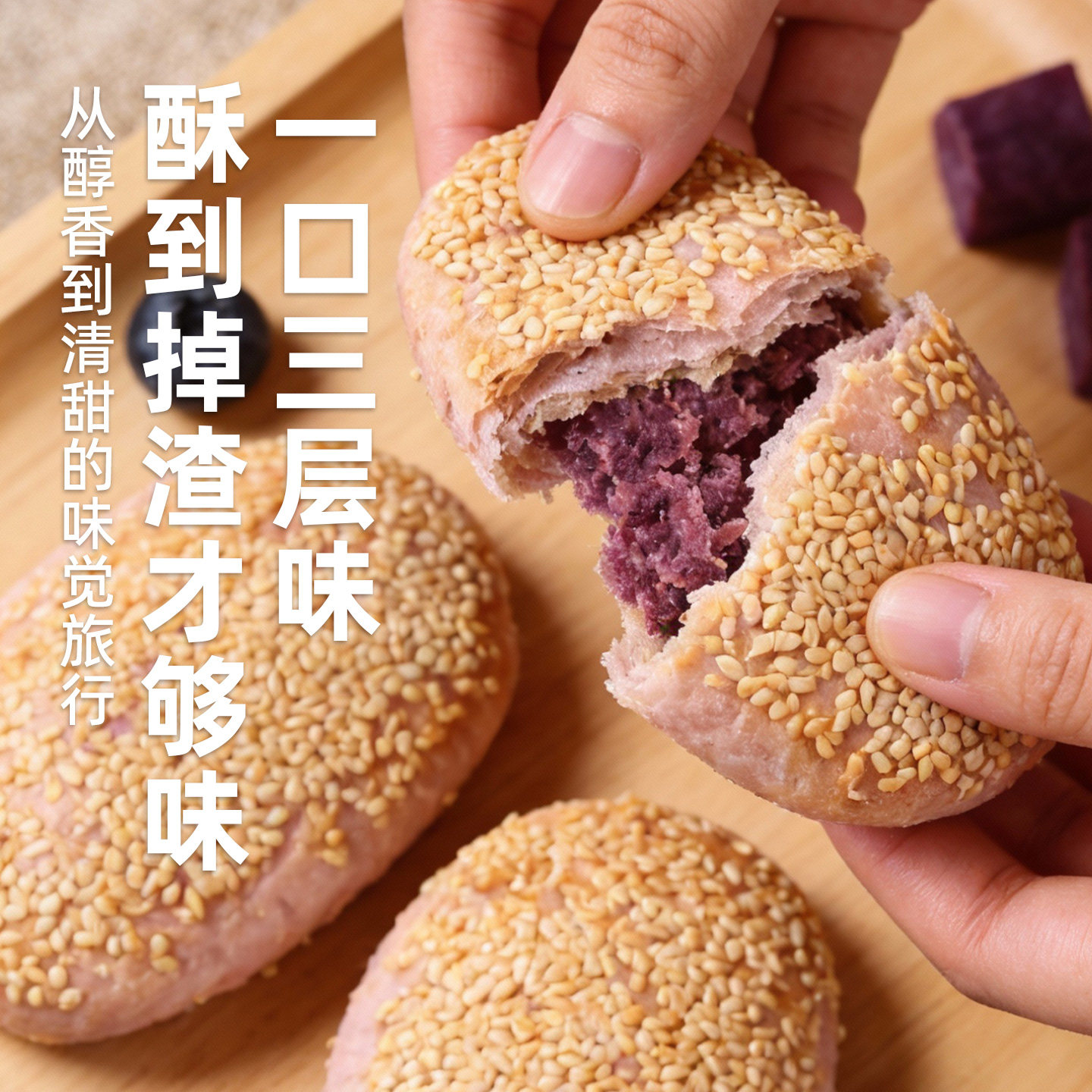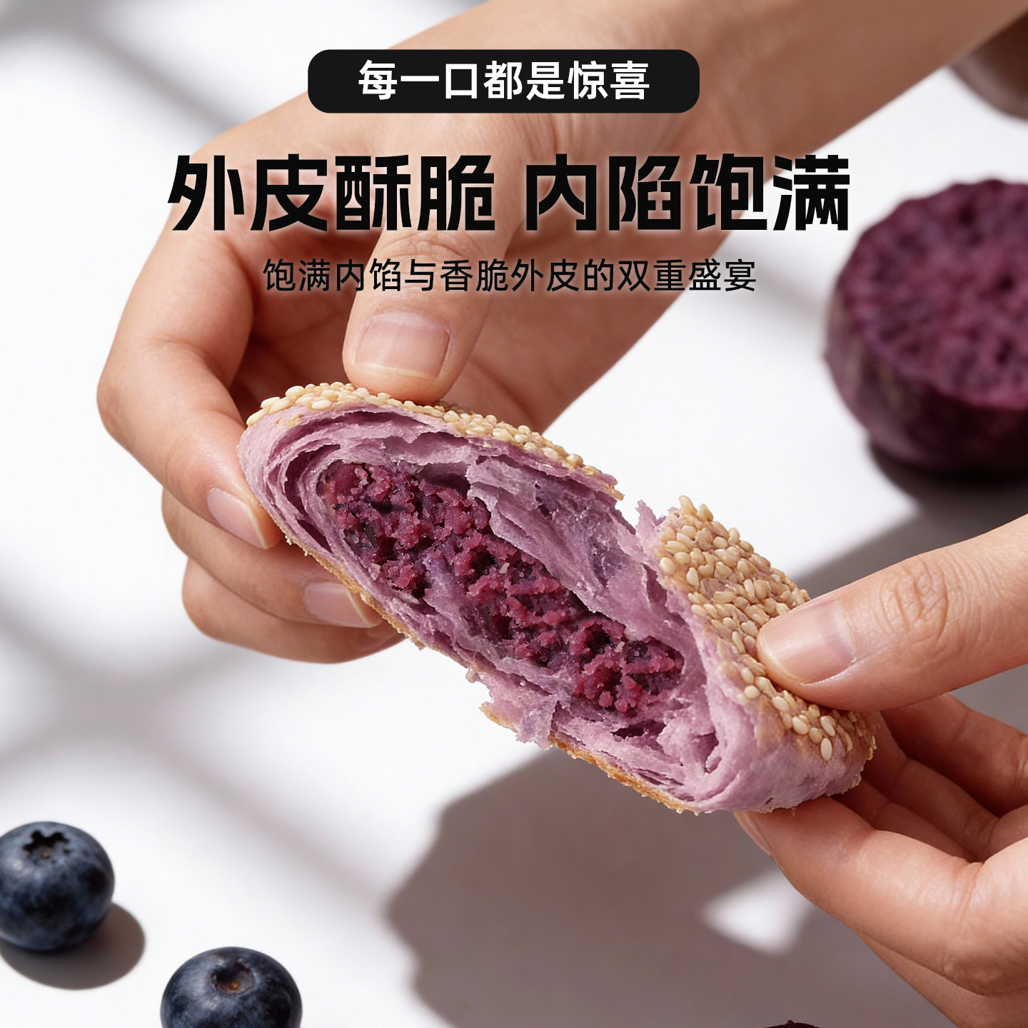 📚 糖师爷老上海蓝莓紫薯烧饼儿童早餐半成品加热即食蟹壳黄酥饼馅饼