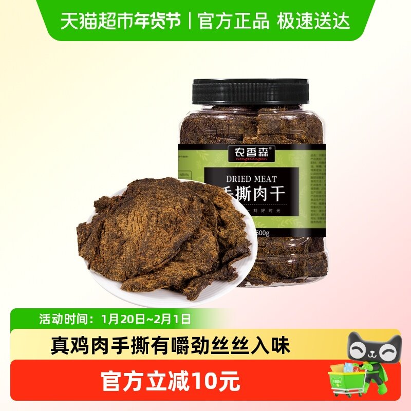 📚 农香森手撕肉干罐装500g原切鸡胸肉健身代餐减低耐嚼脂卡即食零食