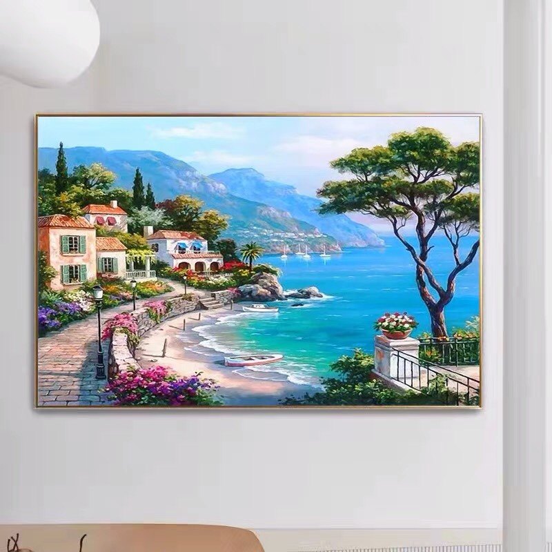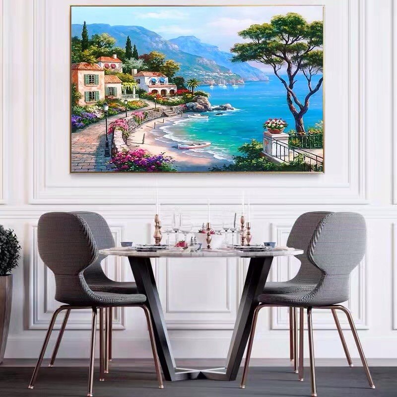 📚 海港小镇十字绣2022新款线绣卧室餐厅简约现代自己绣棉线小幅风景