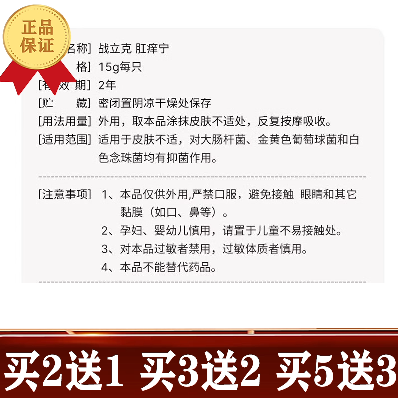 📚 肛痒宁乳膏 战立克【买2送1/3送2】植物萃取男女抑菌