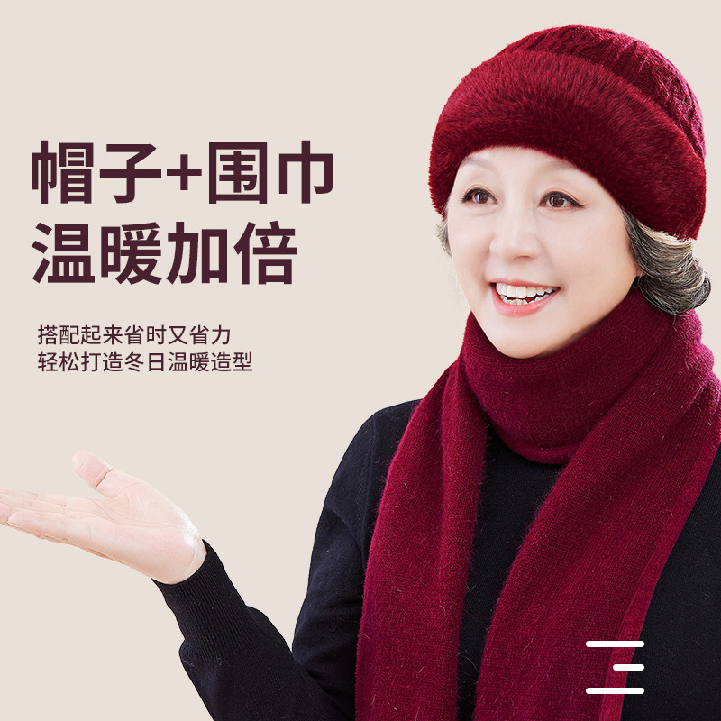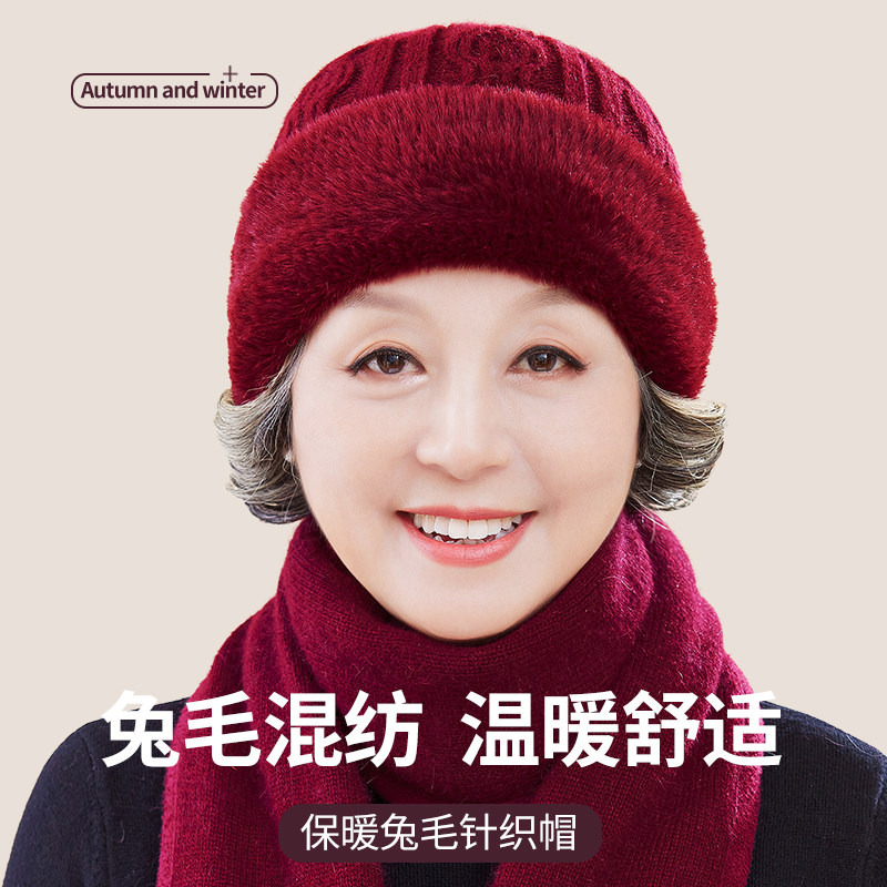 📚 老太太帽子冬季女帽保暖毛线帽老年人妈妈冬帽冬天老人奶奶针织帽