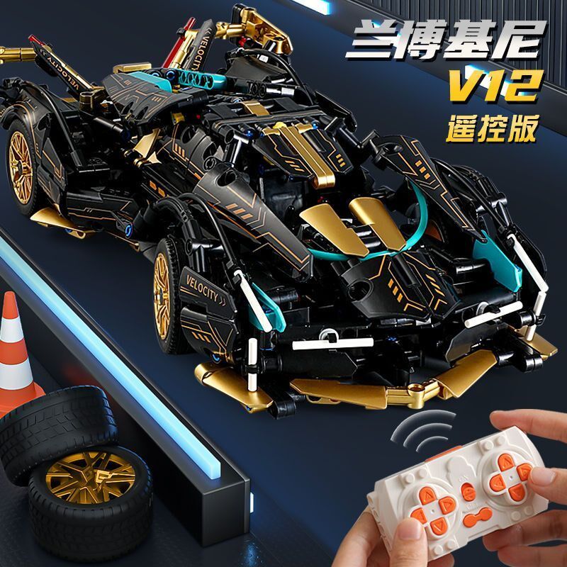 📚 新款跑车武黑尼兰k博基士遥控赛车男孩拼装积木玩具汽车高级感礼