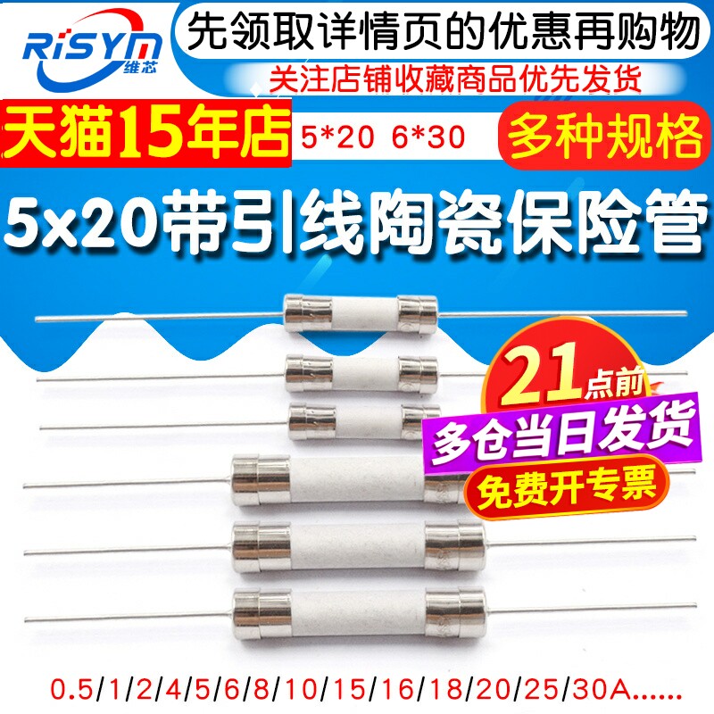 📚 陶瓷保险管带引脚5*20快断2A/3A/5A/8A/10A/12A/15A/20A/25A/30A
