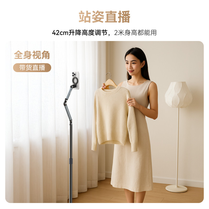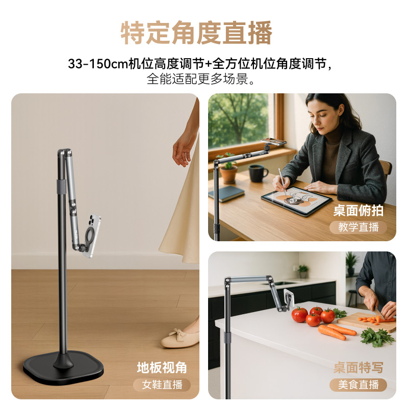 📚 TELESIN泰迅手机磁吸直播支架落地式Pro专业拍摄俯拍对镜直播架可伸缩360度旋转拍照拍视频追剧平板iPad通用