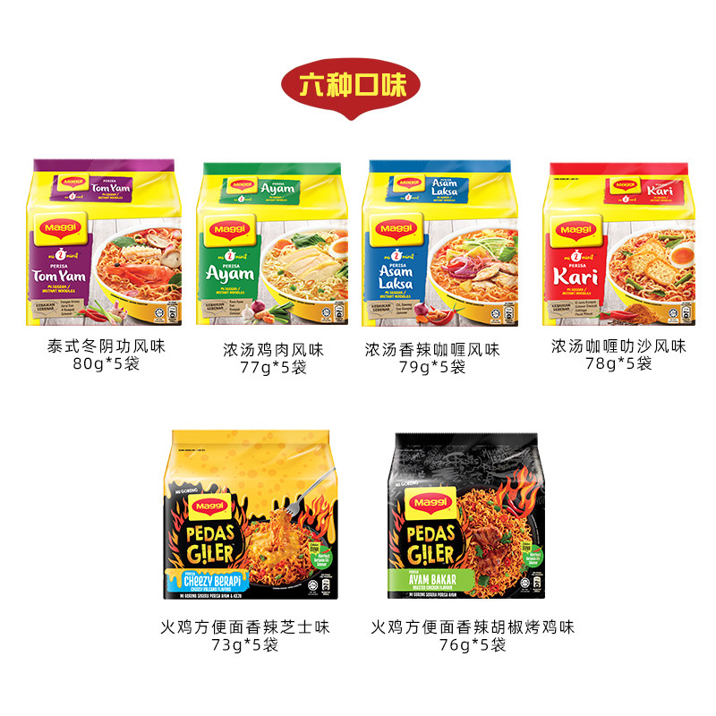 🔥马来西亚美极MAGGI五连包!香辣芝士烤鸡冬阴功味,券后仅35.9💥