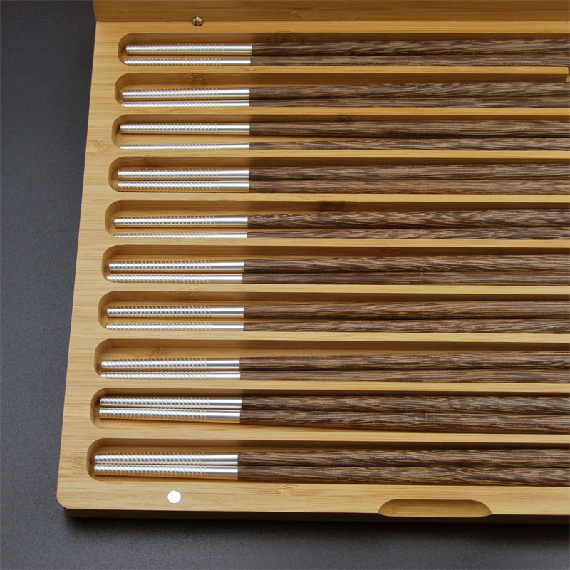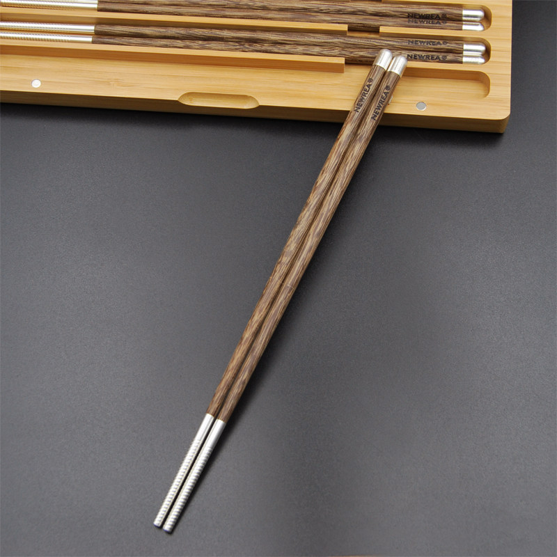 📚 NEWREA新锐 鸡翅木双头包银筷子 S999银 餐具套装 商务礼品