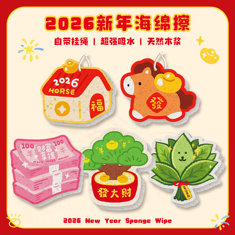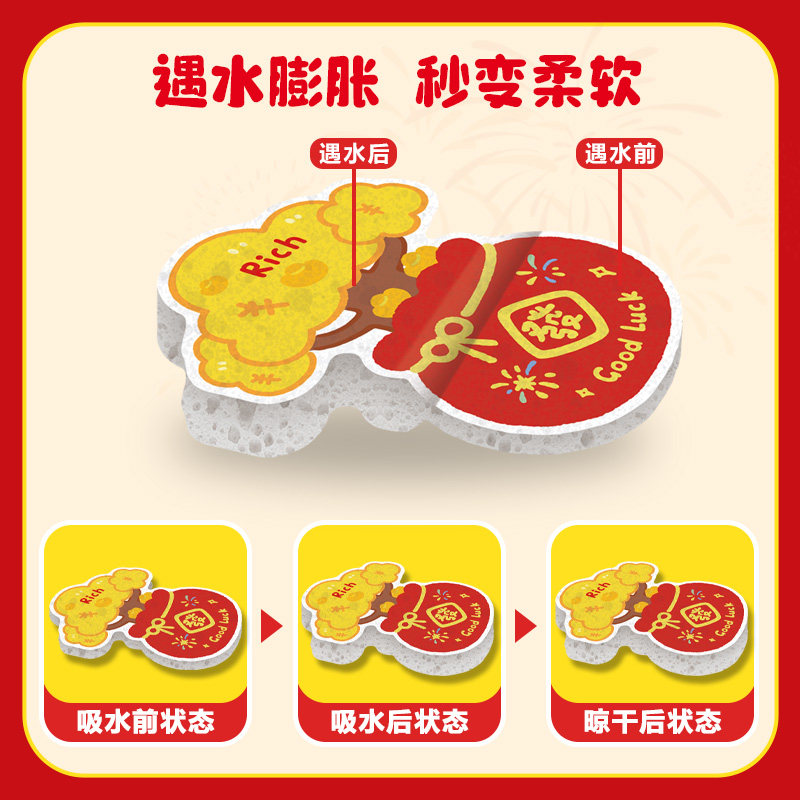 📚 新年發财树海绵擦魔力擦家用厨房洗碗擦抹布压缩木桨棉去污百洁布