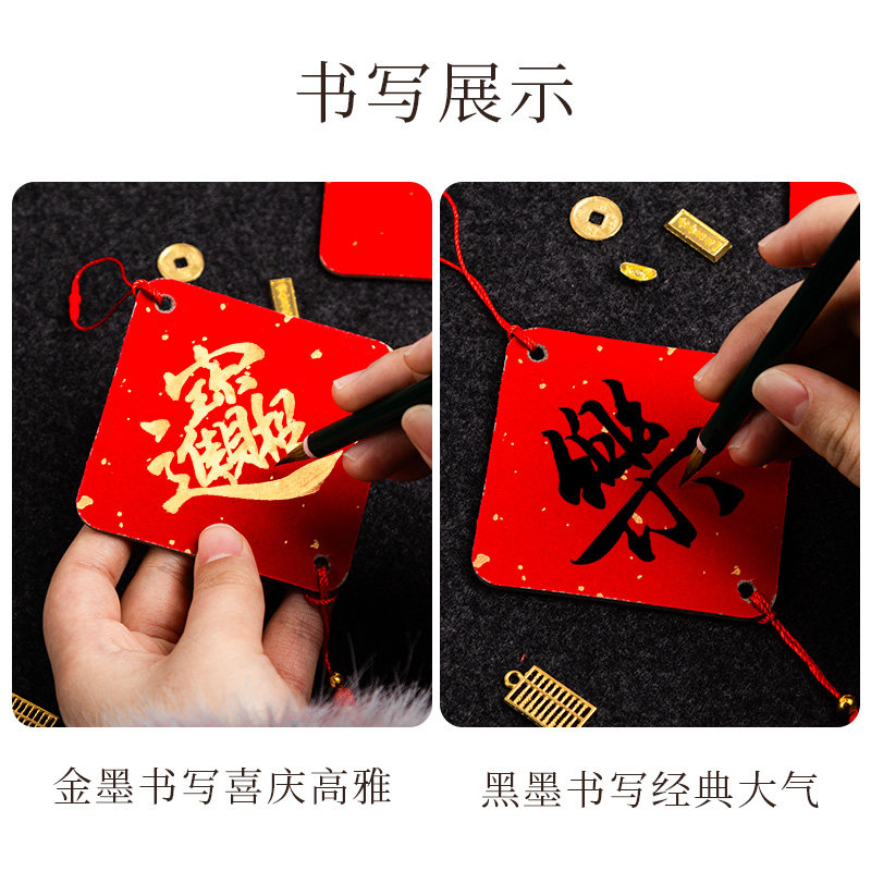 📚 迷你加厚福卡小挂件空白宣纸手写洒金福字卡纸红纸双面万年红硬卡片五言七言挂饰对联纸春节国画书法作品纸