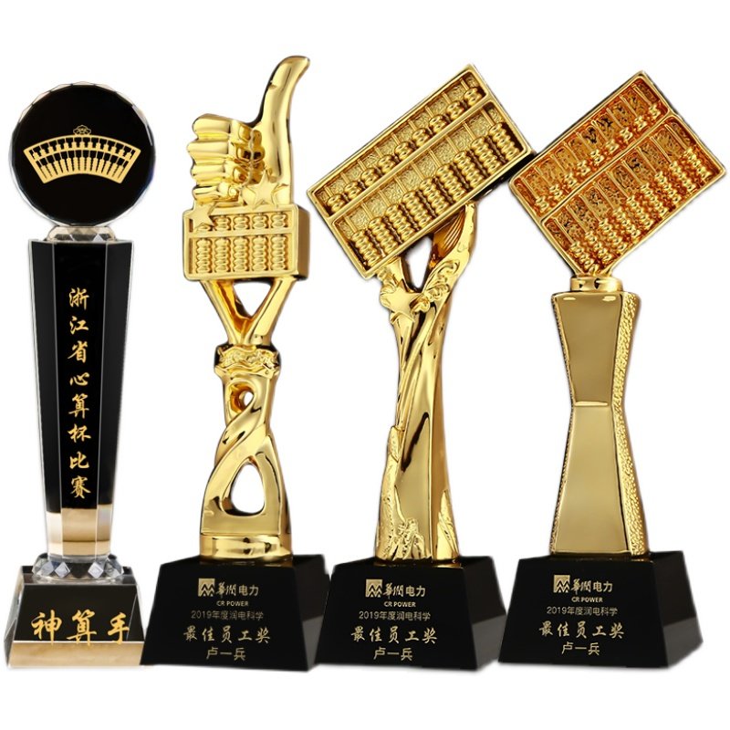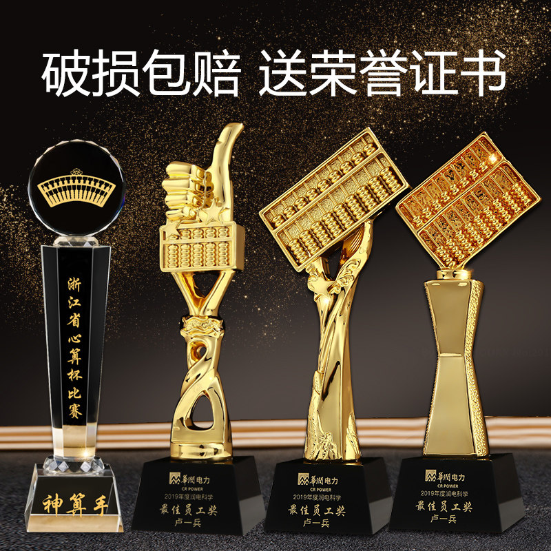 📚 【当天发货】会计水晶奖杯定制定制金算盘奖珠心算财务神算子年会
