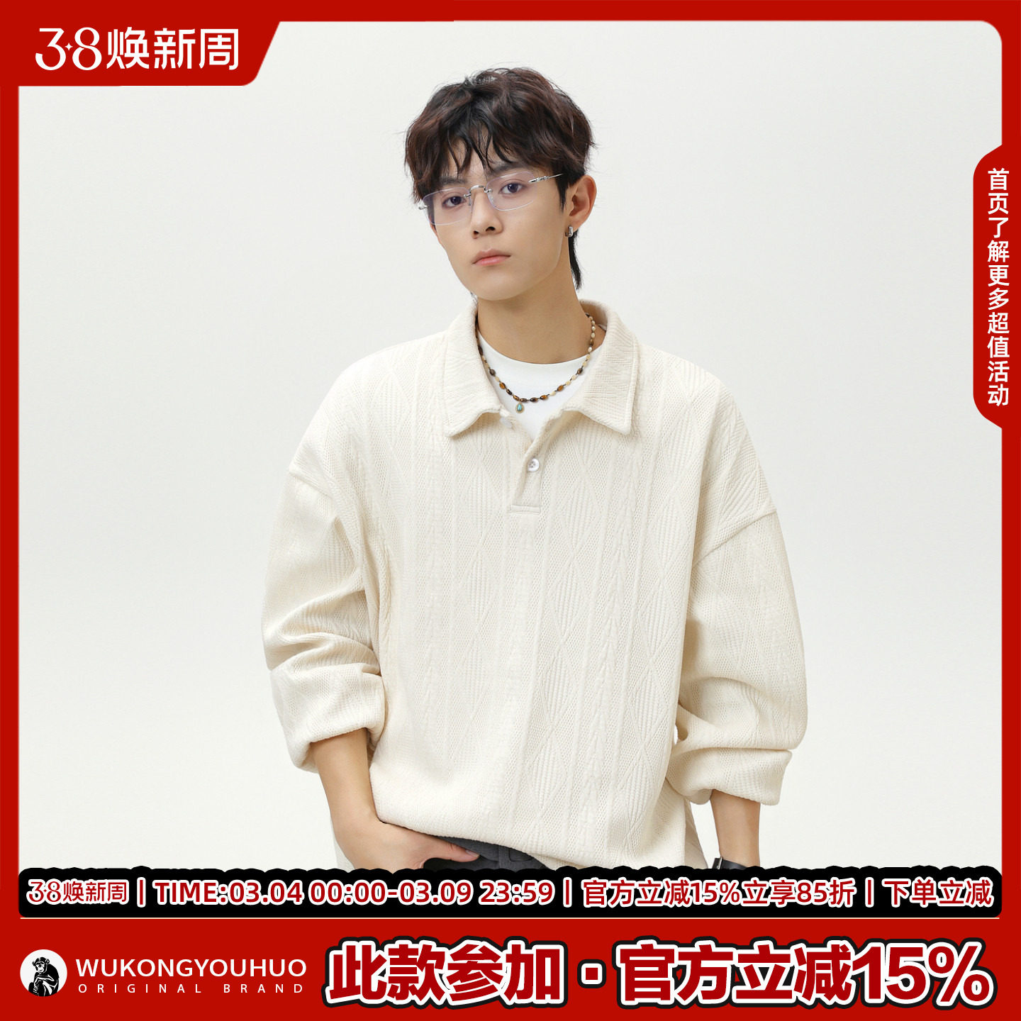 59¥ CZ057 WmJbUFvCqGT¥ https://m.tb.cn/h.i38IsR8 悟空有货麦穗纹肌理感纯色上衣POLO衫男复古宽松百搭情侣翻领卫衣 --------------------- 【原售价】196元 【现售价】98元。