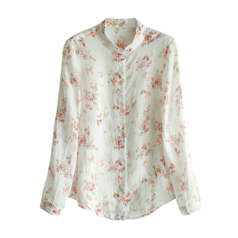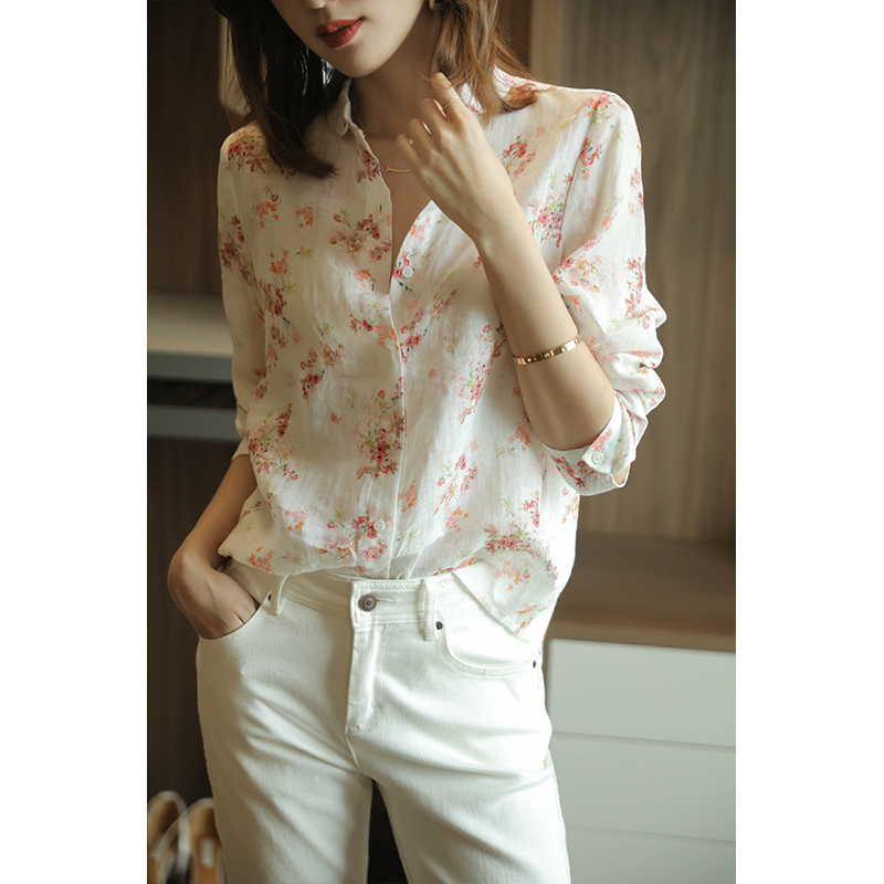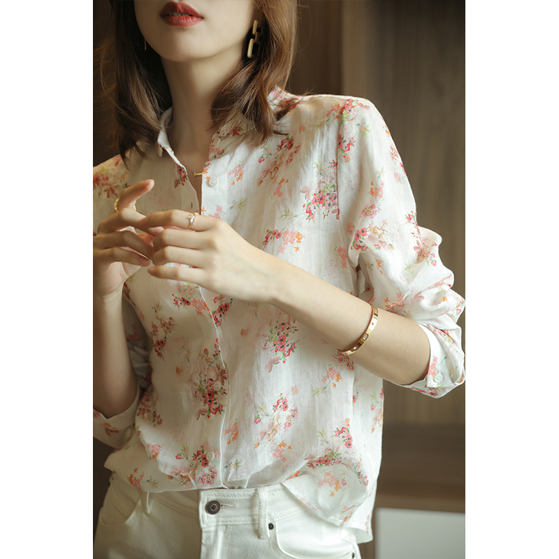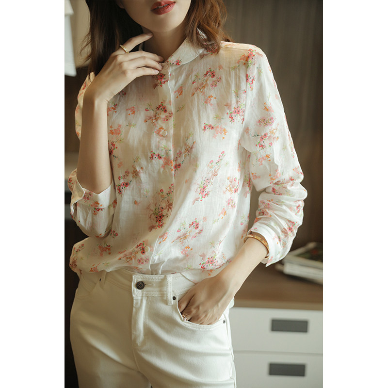 📚 淡粉桃花色,又仙又美!!亚麻小众设计感长袖衬衫上衣2023女春夏