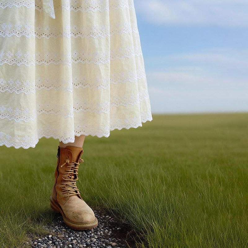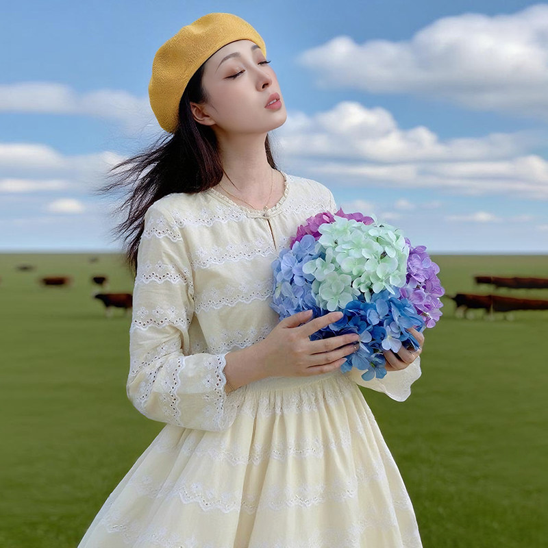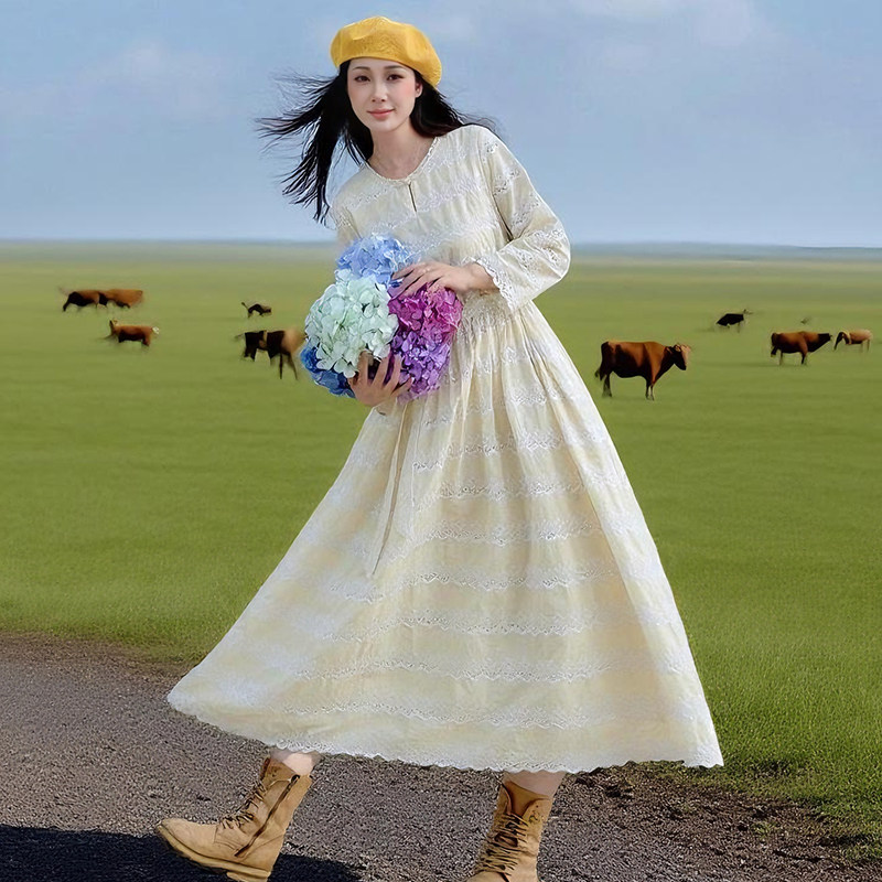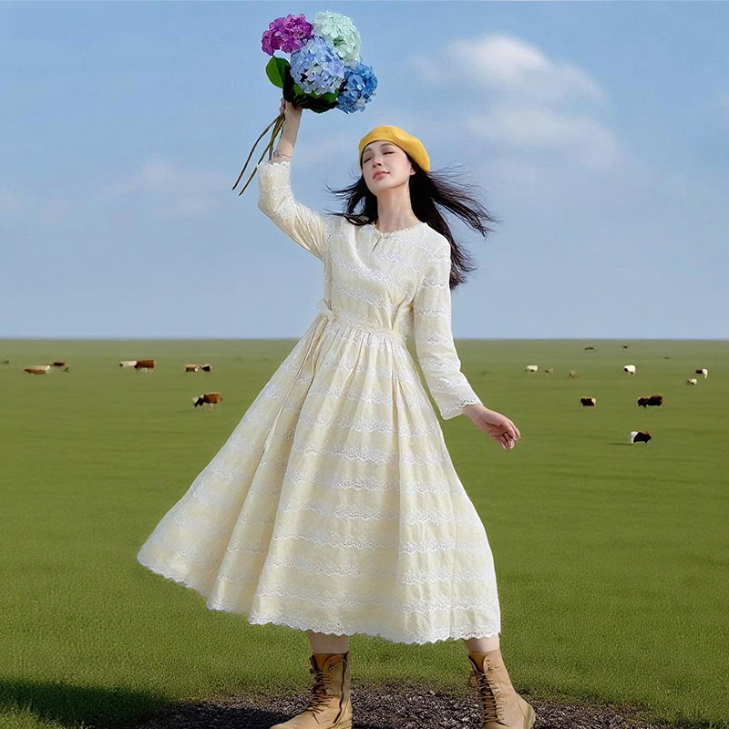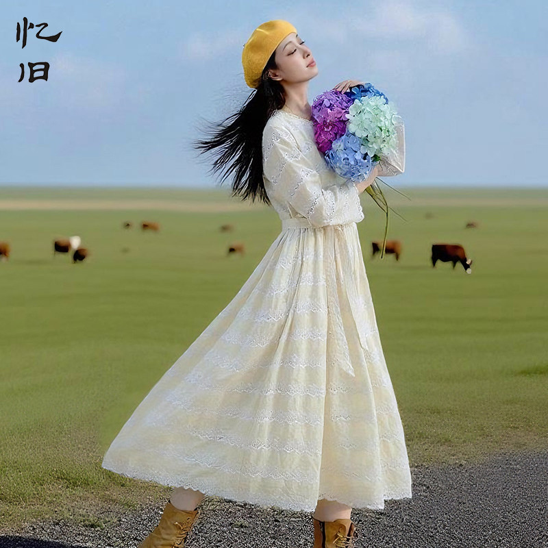 📚 清【梦里千帆】复古宽松刺绣连衣裙女2025秋季款精致波浪边大摆裙