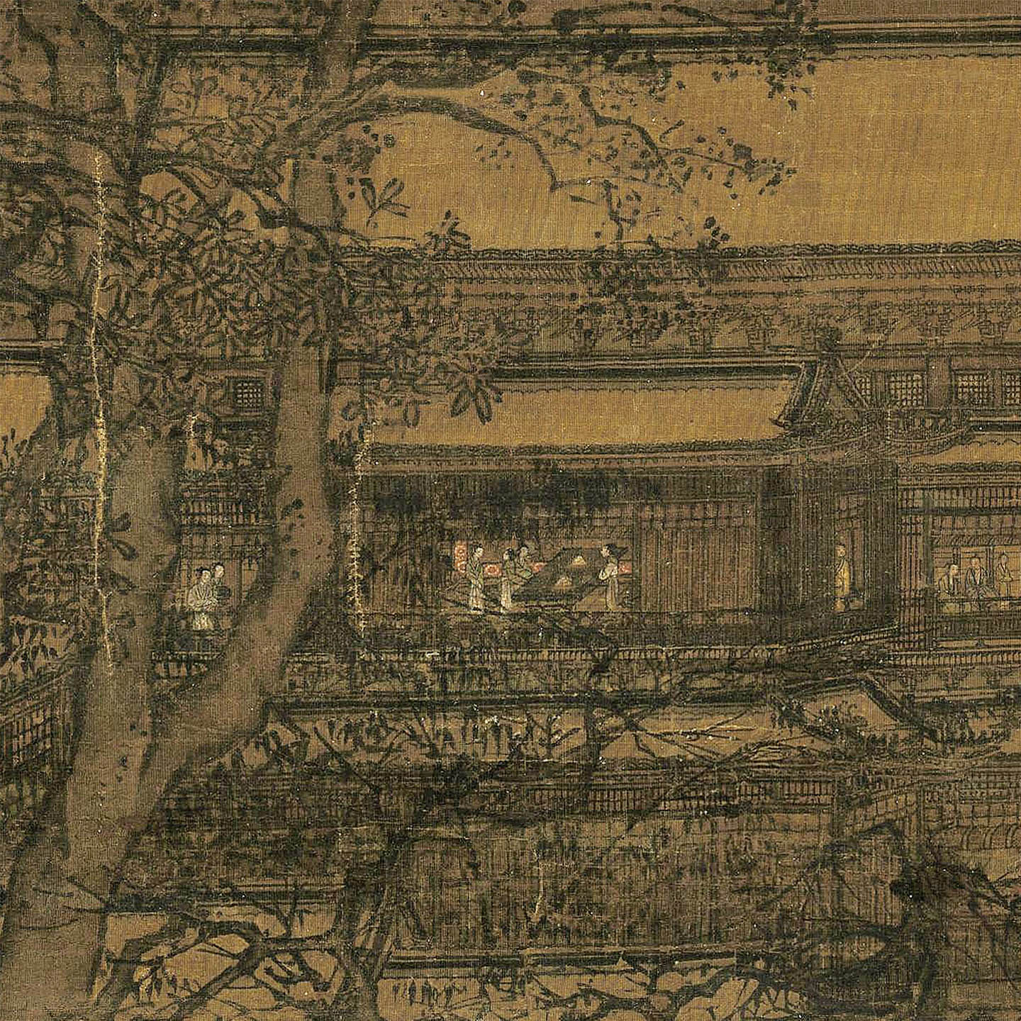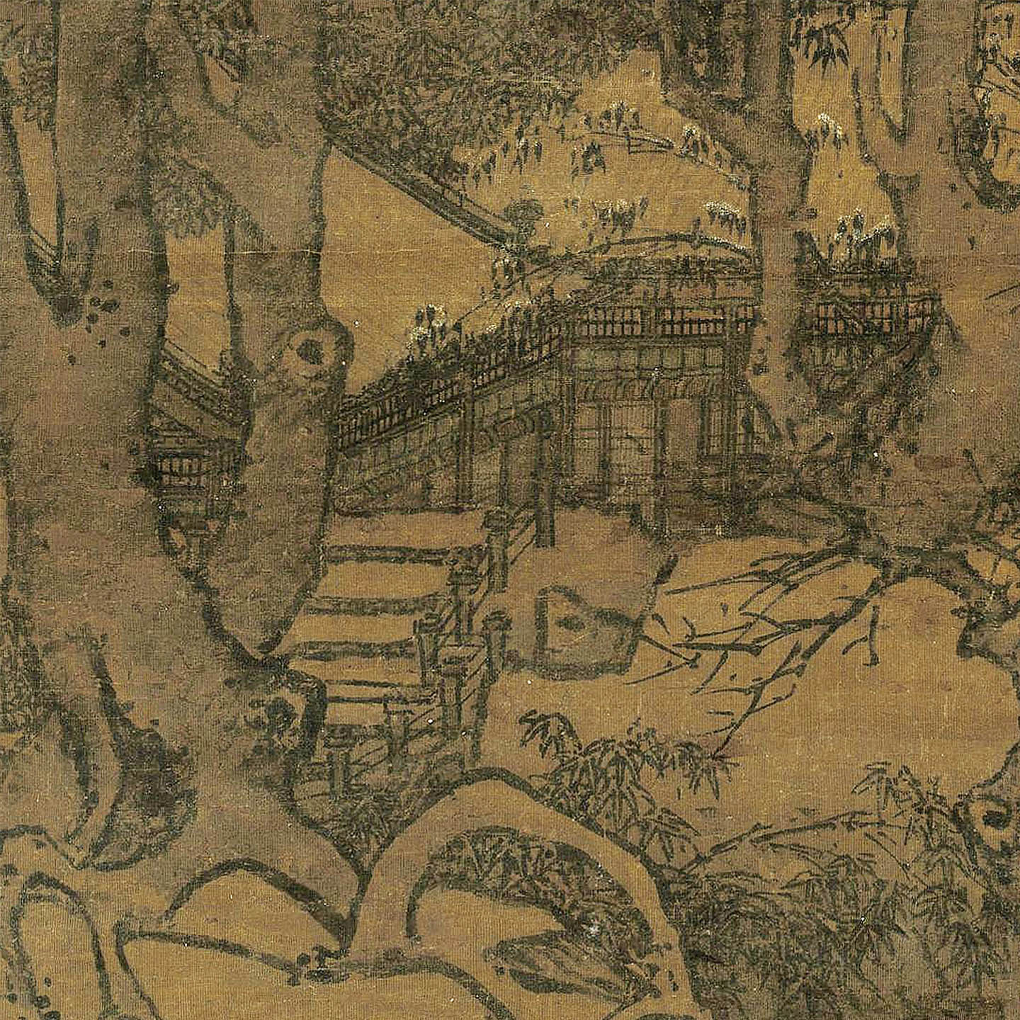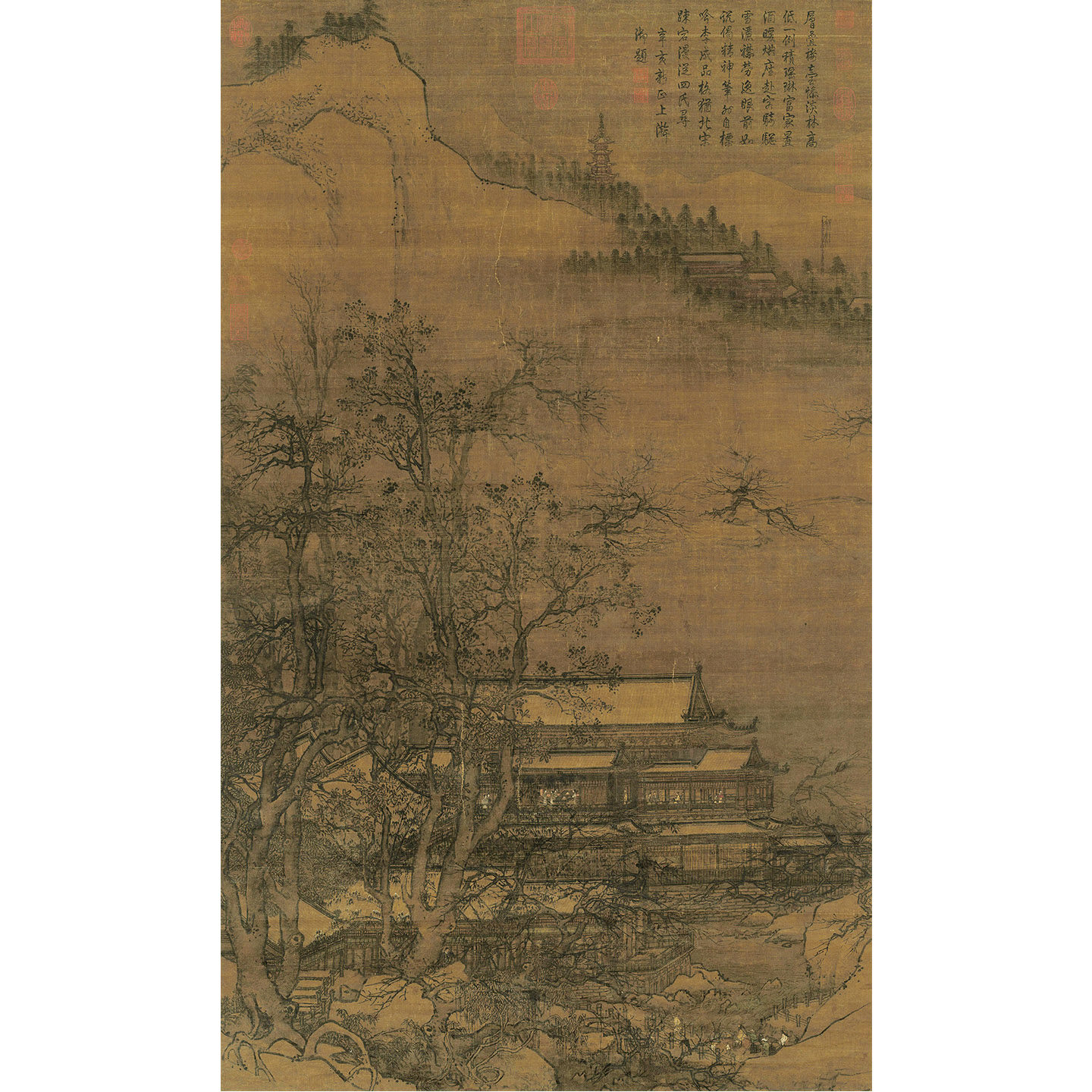 📚 宋人寒林楼观图宋代山水画微喷打印临摹画稿装饰画芯绢布
