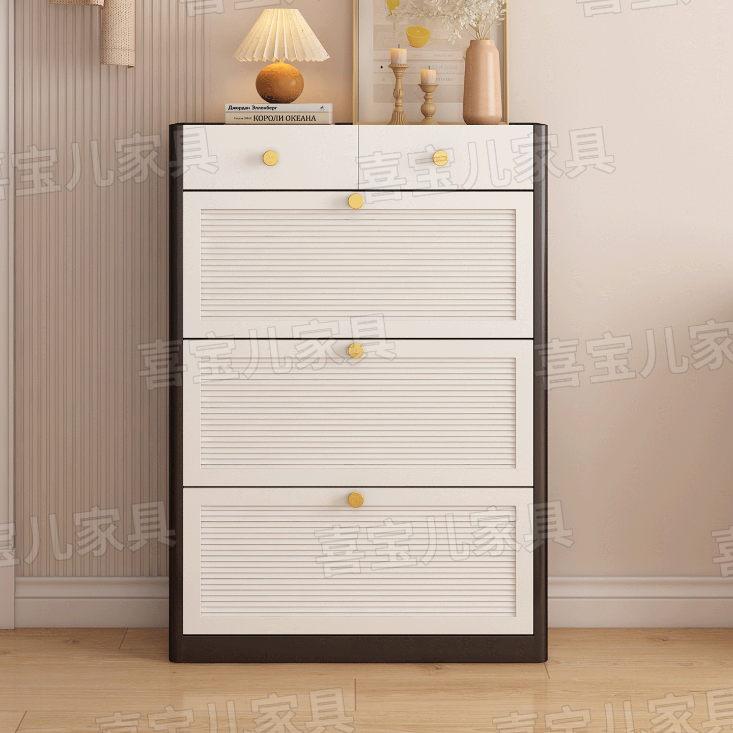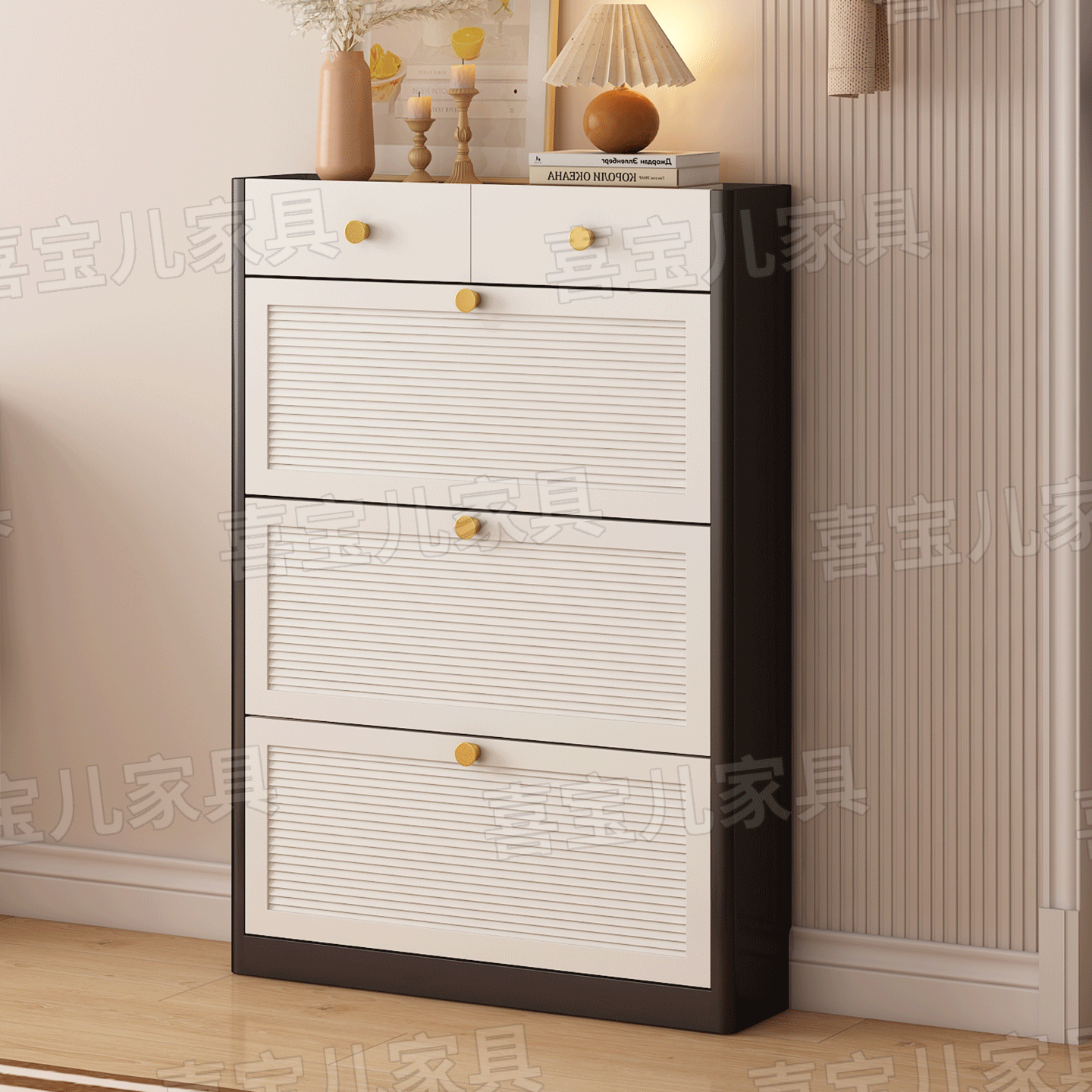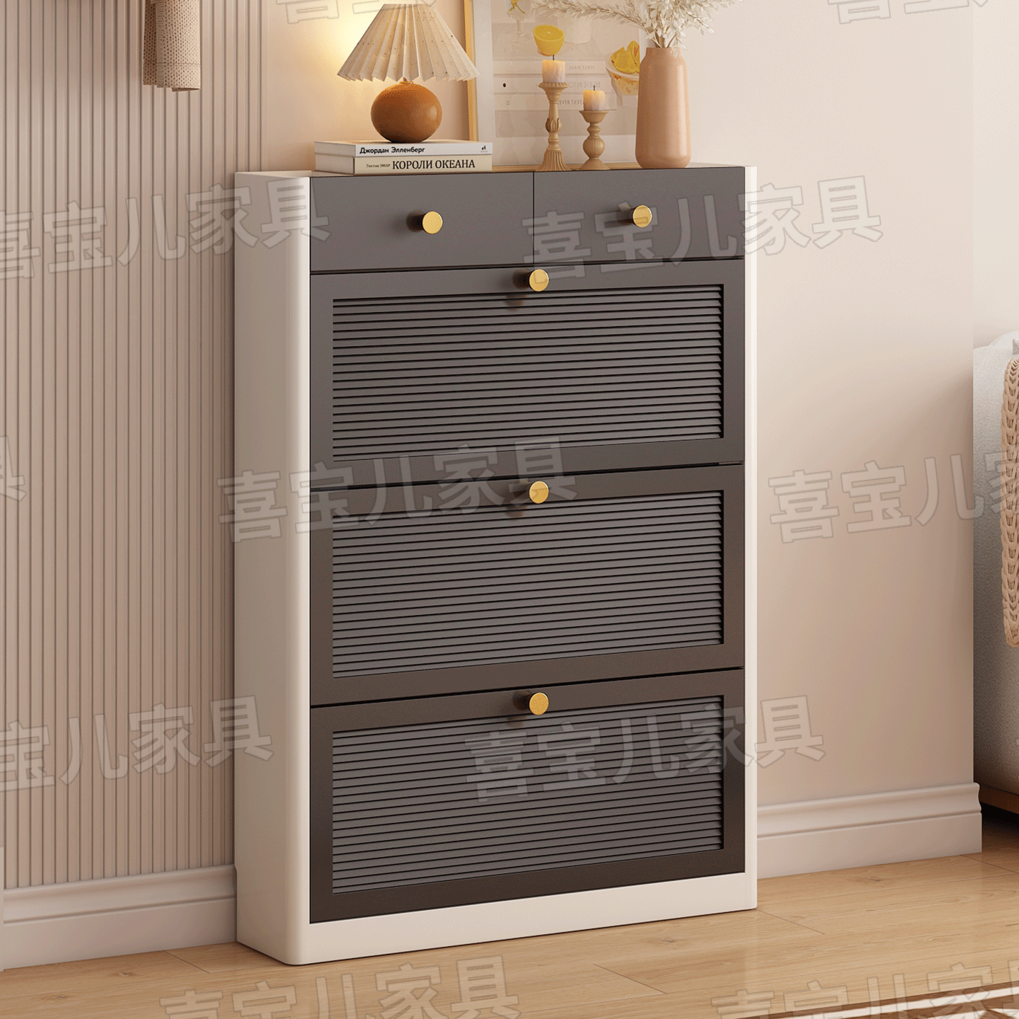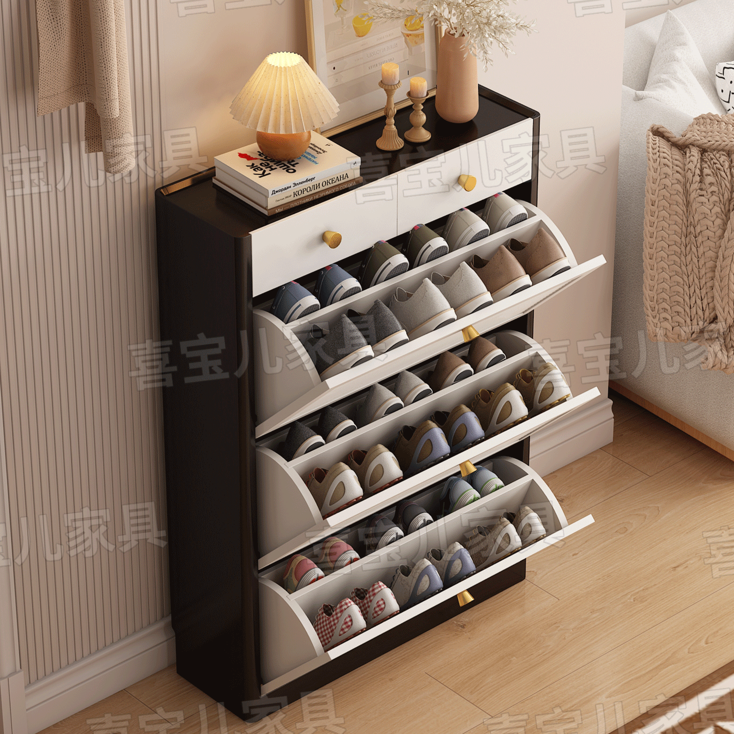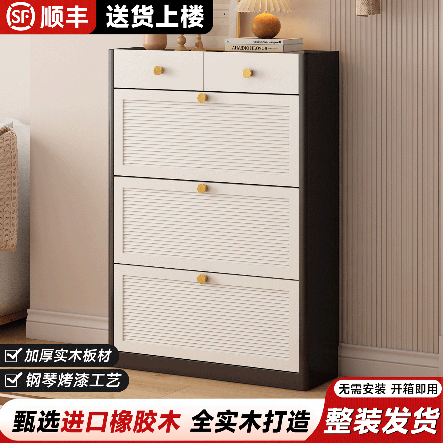 📚 实木鞋柜家用门口窄款鞋架子免安装超薄翻斗式玄关柜多功能收纳柜