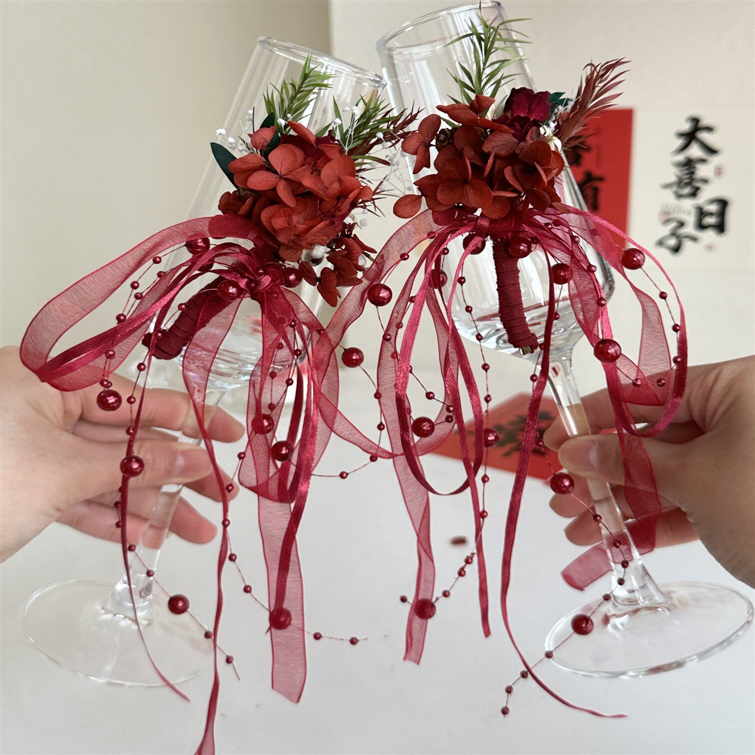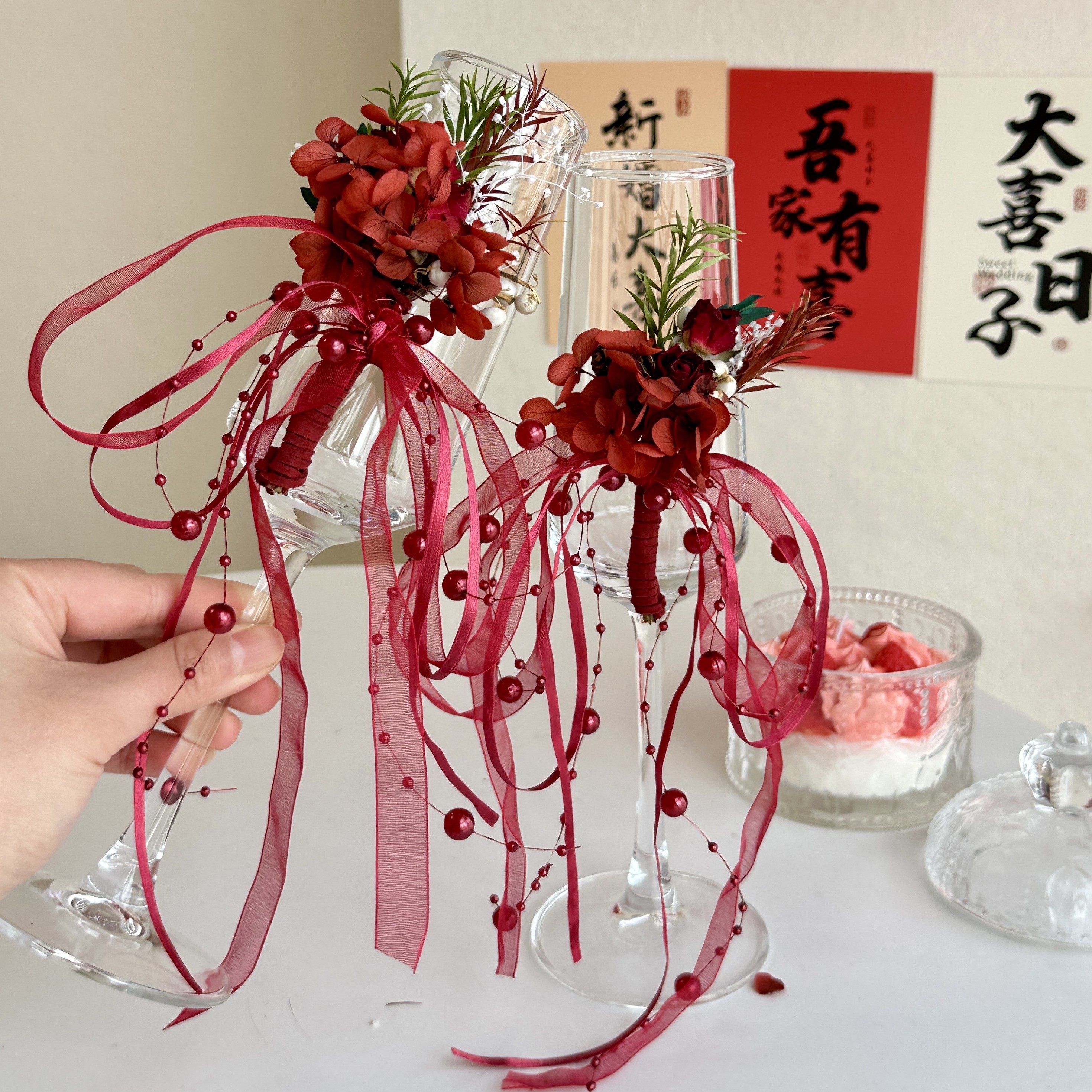 📚 结婚敬酒杯新人香槟杯高脚杯婚礼创意diy材料包鸡尾酒杯