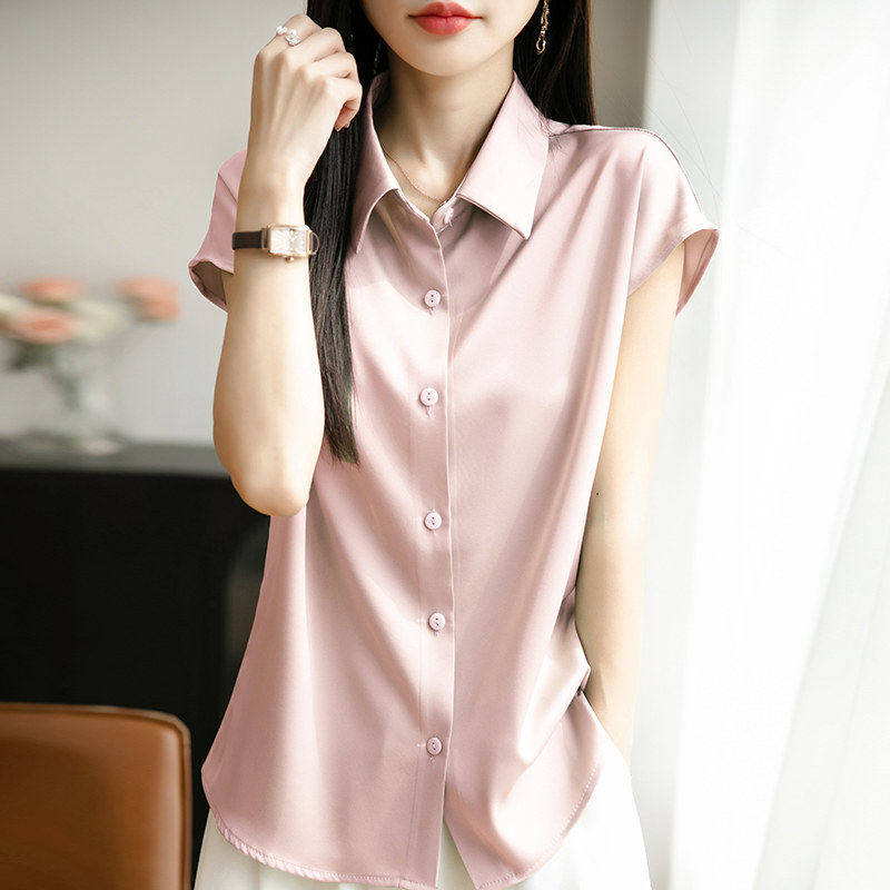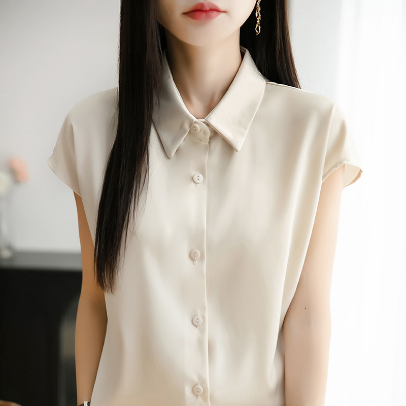 📚 2025年夏新款醋酸真丝缎面翻领衬衫女宽松单排扣无袖背心内搭上衣