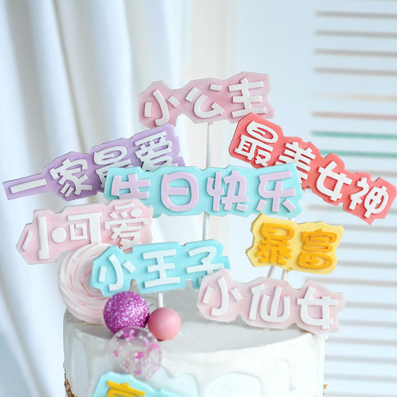 📚 小仙女小公主女神男神巧克力生日字牌棒棒糖翻糖硅胶模具蛋糕装饰