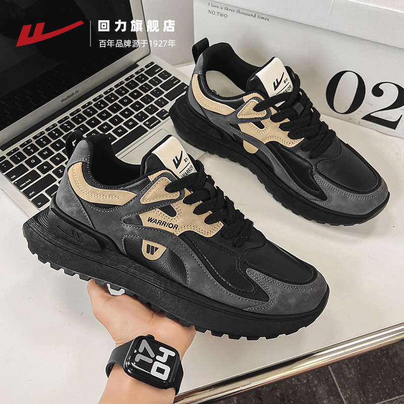 📚 回力男鞋2026新款春季休闲厚底老爹鞋男士跑步鞋子黑色运动鞋男款