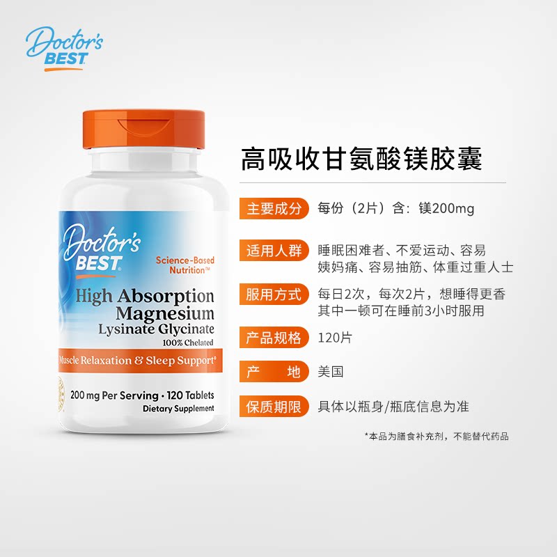💥💥惊艳!种草金达威Doctor'sBest甘氨酸镁片补充剂,进口睡眠赖氨酸D3K2镁高吸收,券后仅174元!💫