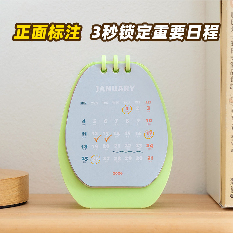 📚 多巴胺开心果小台历2025到2026年日历2026年新款桌面摆件办公室活动记事本迷你月历26年高考倒计时提醒牌定制