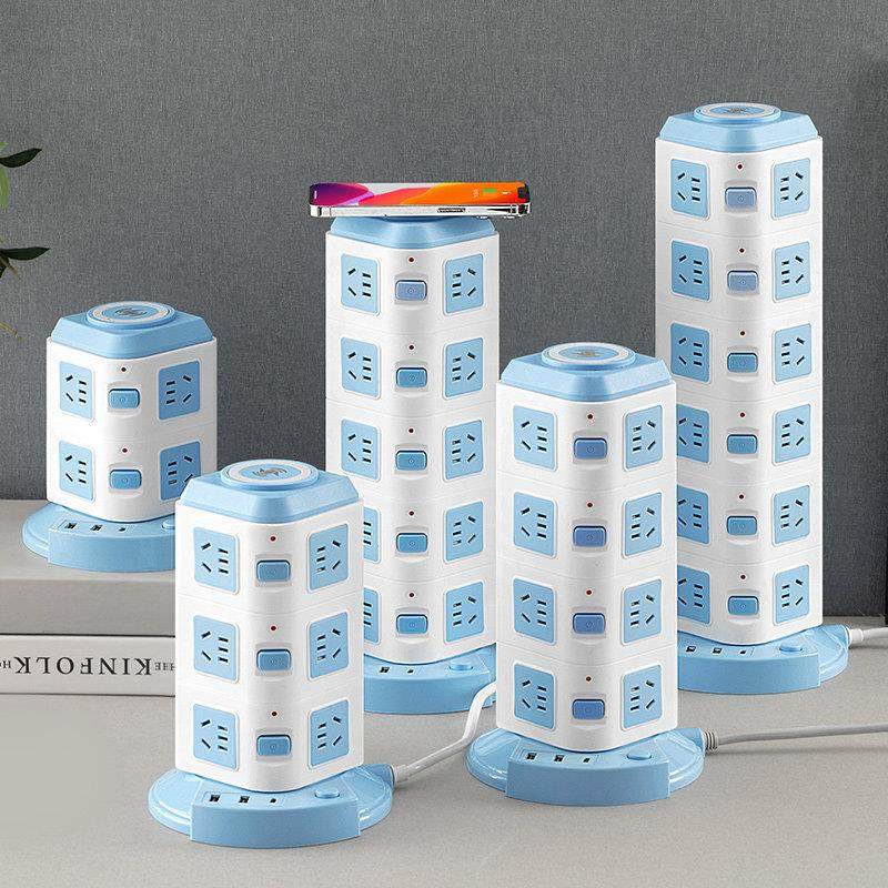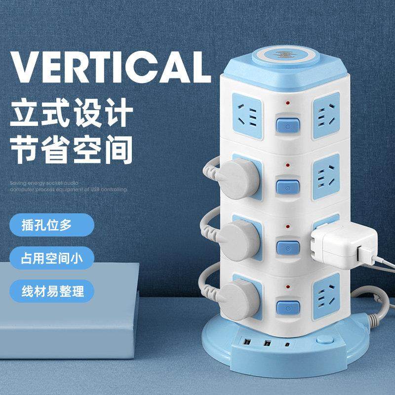 📚 立式塔形智能无线充电带USB插座板多功能插板插排多插孔接线板